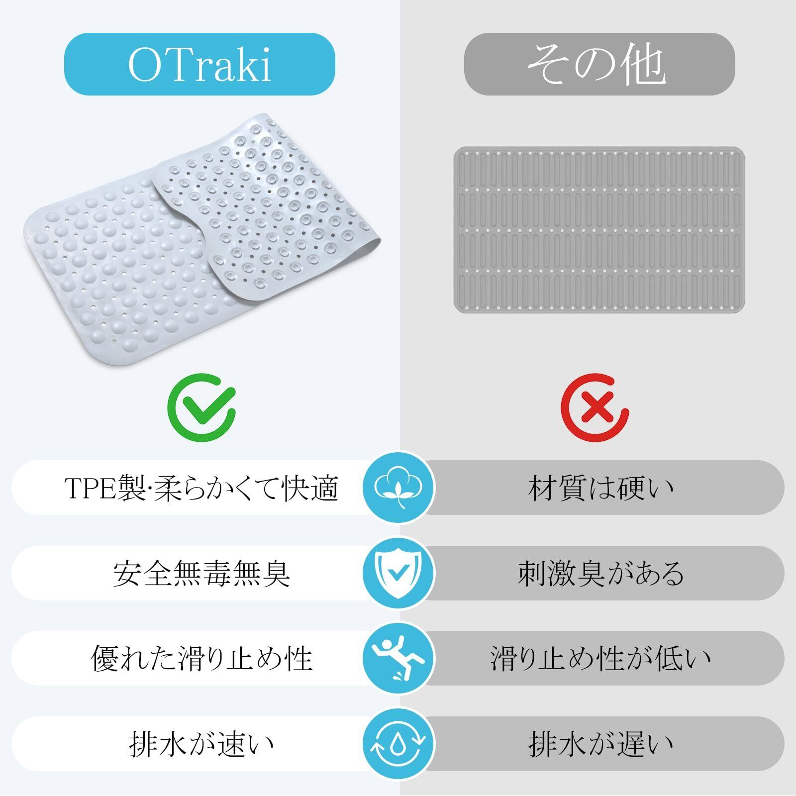 OTraki 浴槽内滑り止めマット TPE製 40×100cm 風呂 滑り止めマット 介護 200個吸盤付き 柔らかい 転倒防止 お風呂 すべり止めマット 防菌 防カビ 老化防止 浴槽マット 浴槽内 滑り止め Bathtub mat 洗い場 出入り口適用 介護用品 グレー