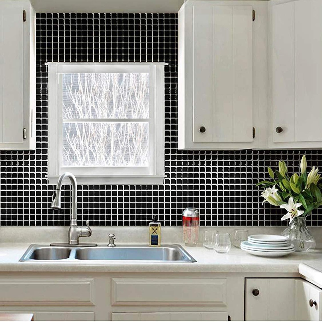タイルシール ブラック 賃貸 ウォールステッカー 耐熱 防水 キッチンタイルシール モザイクタイル風シール 3D 簡単取付 モザイクタイルシール 洗面所 トイレ 北欧 黒 卓上DIY 壁紙シール 4枚 セット 色5 | yankees