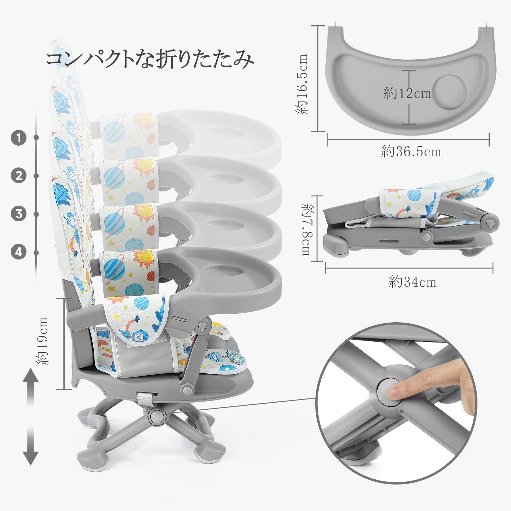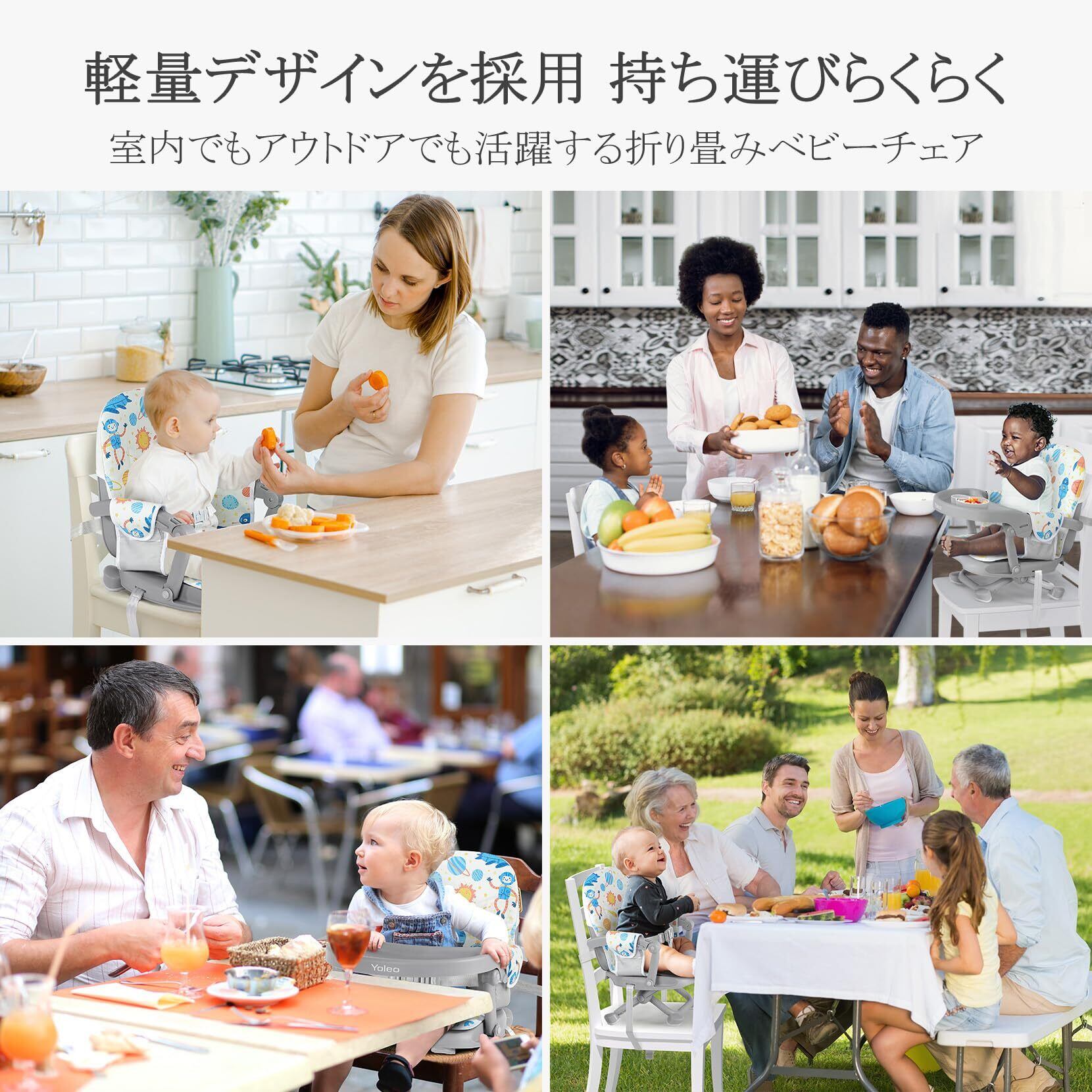 YOLEO ベビーチェア ローチェア 多機能 赤ちゃん用椅子 折りたたみ ベビーチェア 食事 ベビー 椅子 離乳食 高さ調節可能 軽量 持ち運び便利 (グレー, カバー付き)