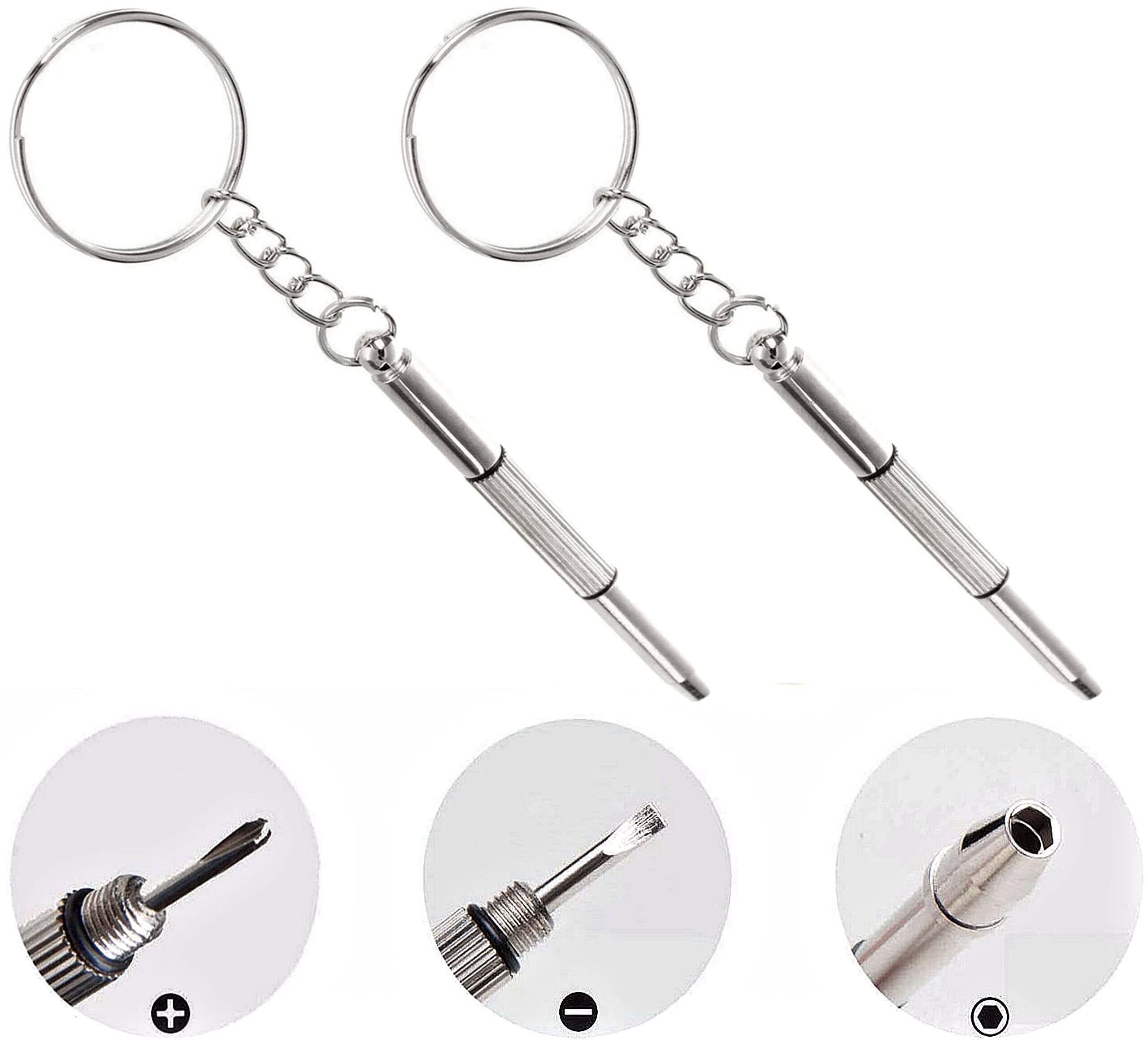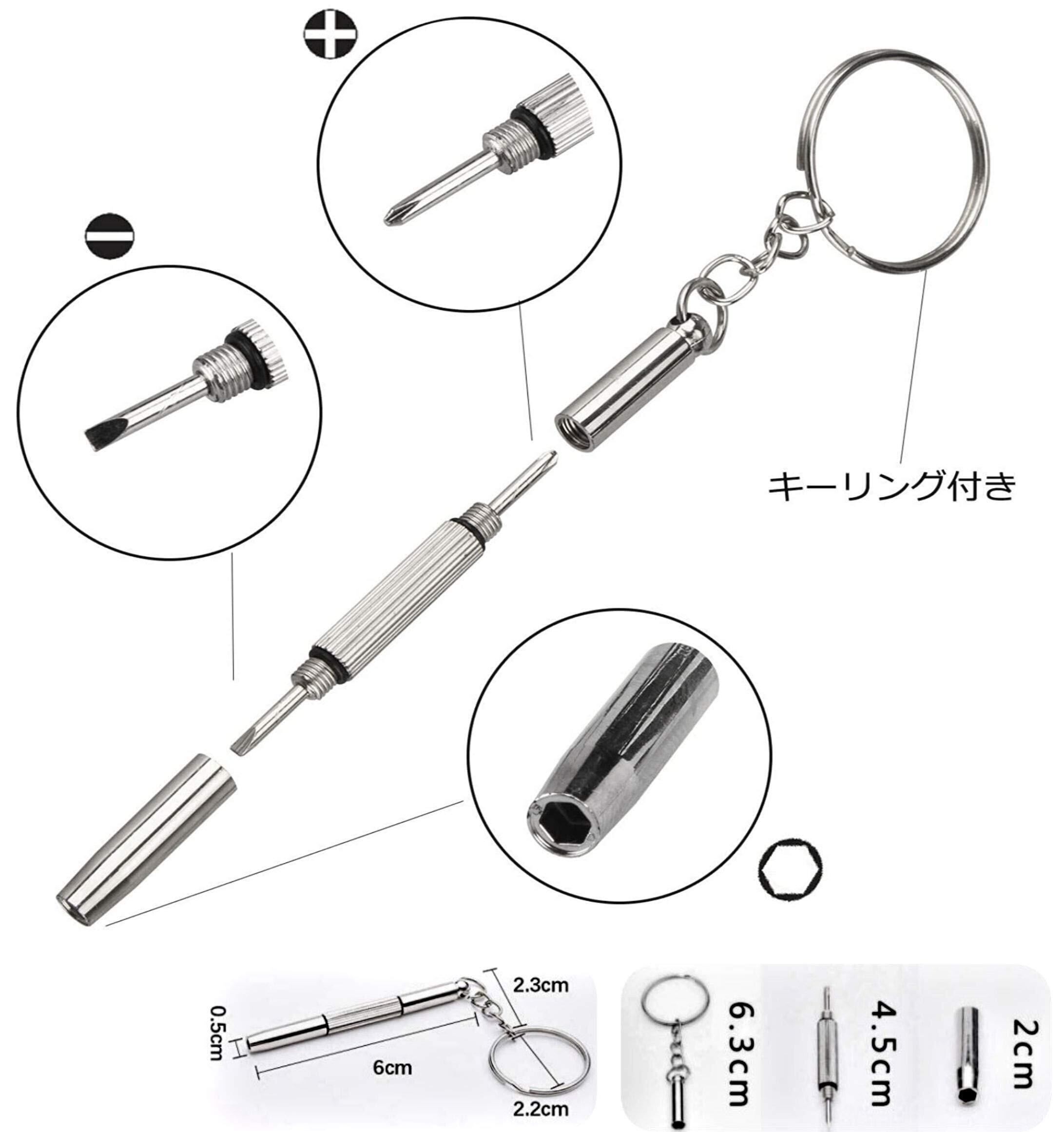 3in1 メガネ サングラス 精密ドライバー 眼鏡 修理 補修 ツール キーリング キーホルダー 携帯電話 ドライバー 合金 ミニ スクリュードライバー 軽量 小型 工具 携帯便利 (2本セット)