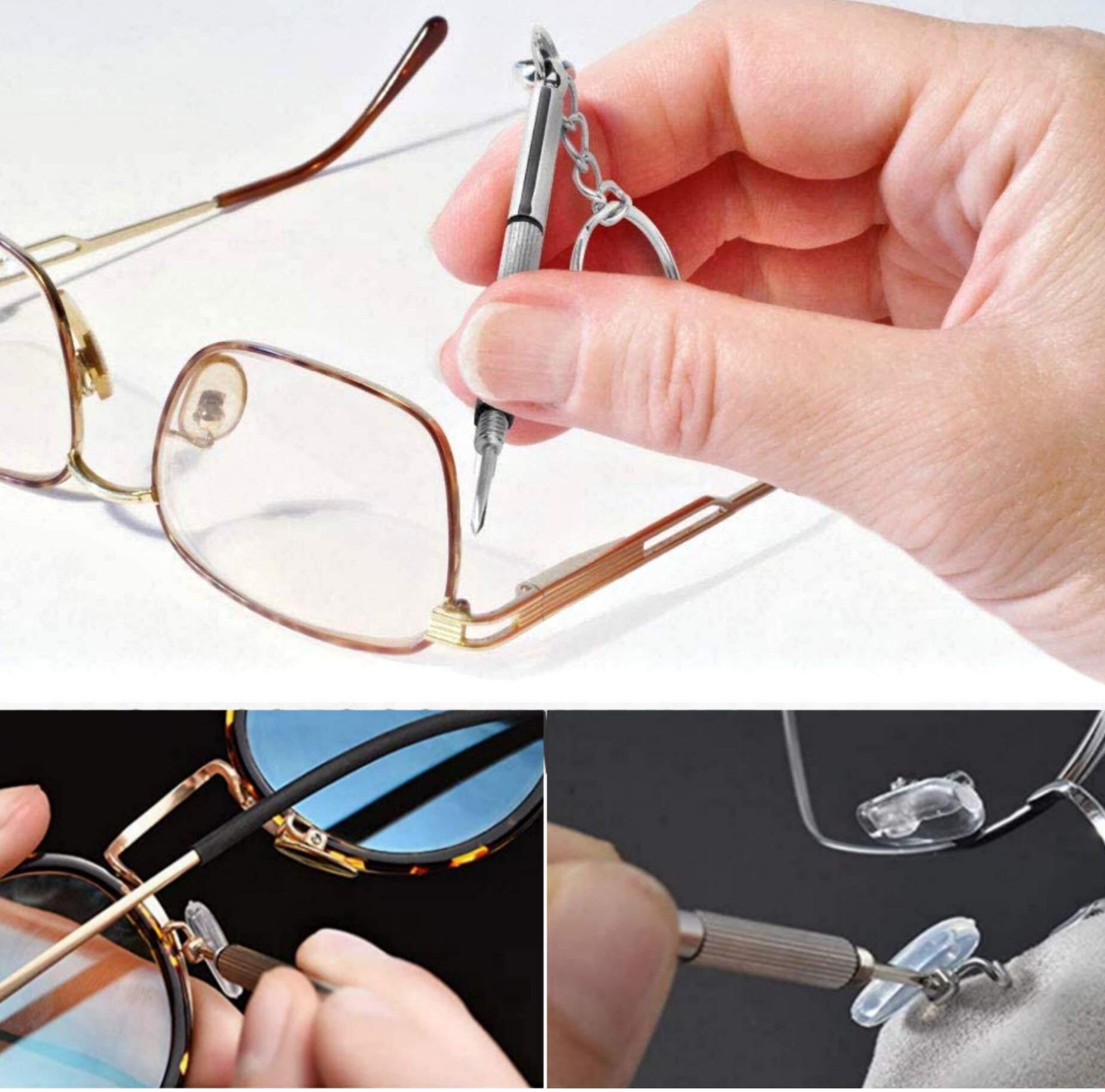 メガネやサングラスの小さなネジに最適化された小型ドライバーです。 眼鏡のツル接続部やアームのジョイント部分や鼻パッド連結部位などに使用されているプラスネジ、マイナスネジ、ナットなどを回すことができ、メガネ修理・補修用・メンテナンスなどにお使頂けます。