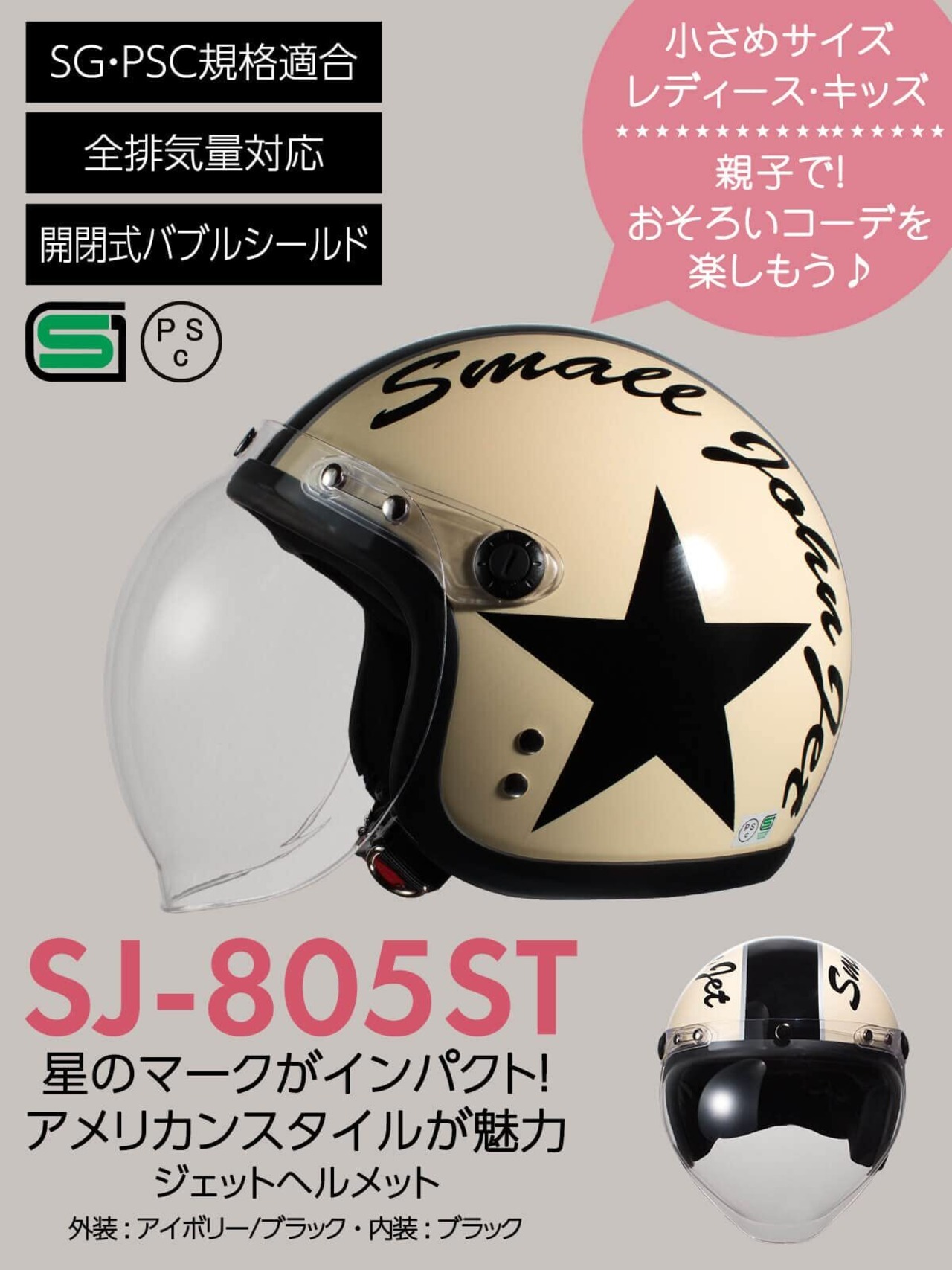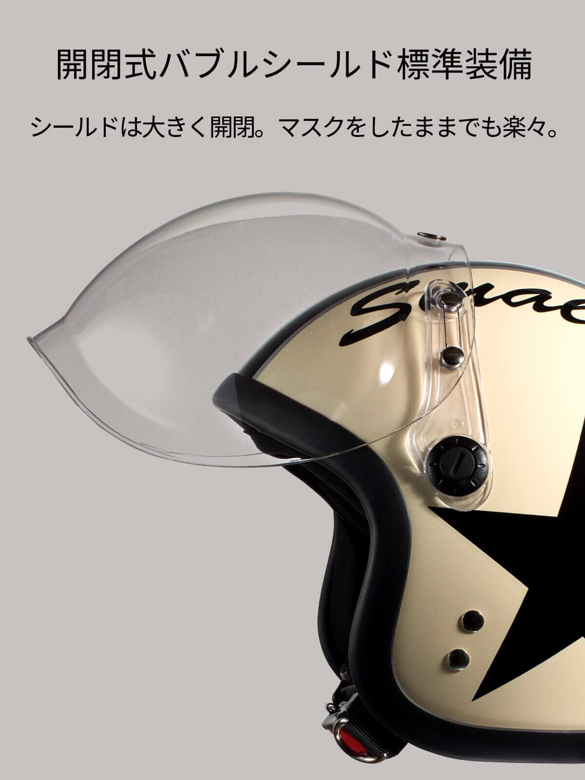 【レディース・キッズ】スモールジェットヘルメット バブルシールド付 アイボリー/ブラック 54cm~57cm未満 スモールジョンジェット