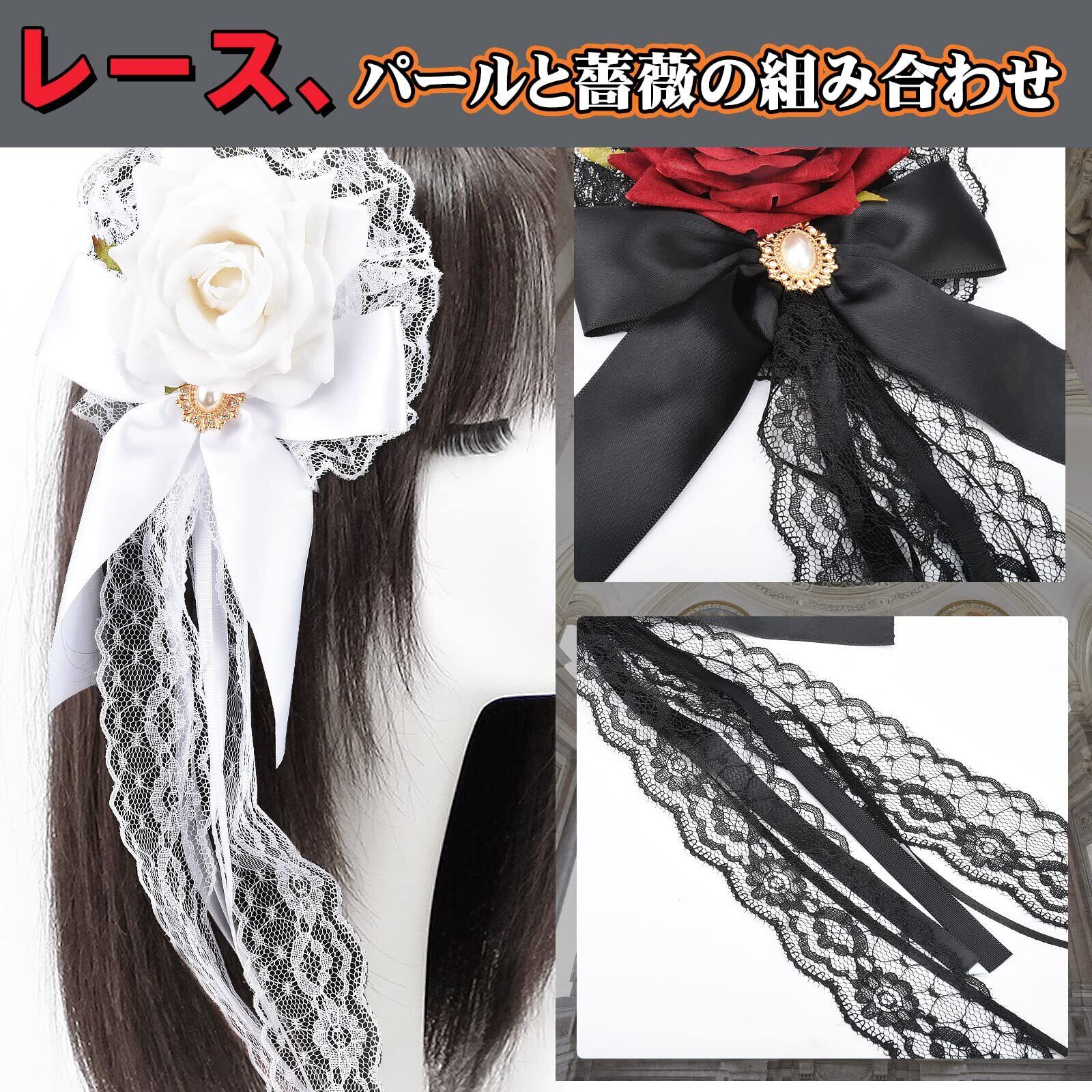 ヘッドドレス ロリータ 薔薇 バラ ヘアアクセサリー ゴシック ゴスロリ 髪飾り クリップ ブローチ 2in1 披露宴 二次会 発表会 葬式 宴会 可愛い 母の日 ギフト 黒