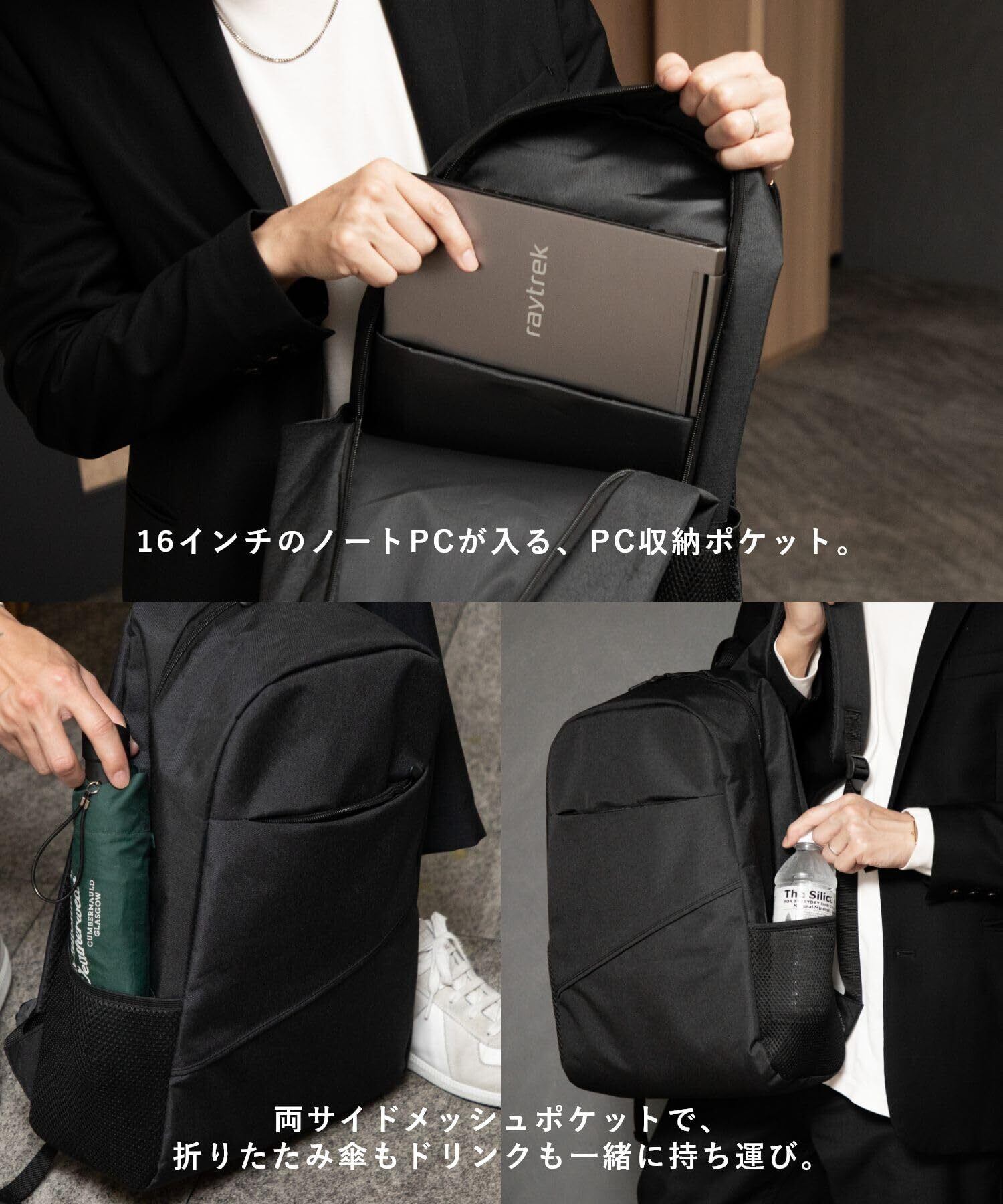 [アンノウンアンドコー] リュック PC収納 ビジネス バックパック 軽量 大容量 通勤 通学 カジュアル ジャパンデザイン メンズ BLACK
