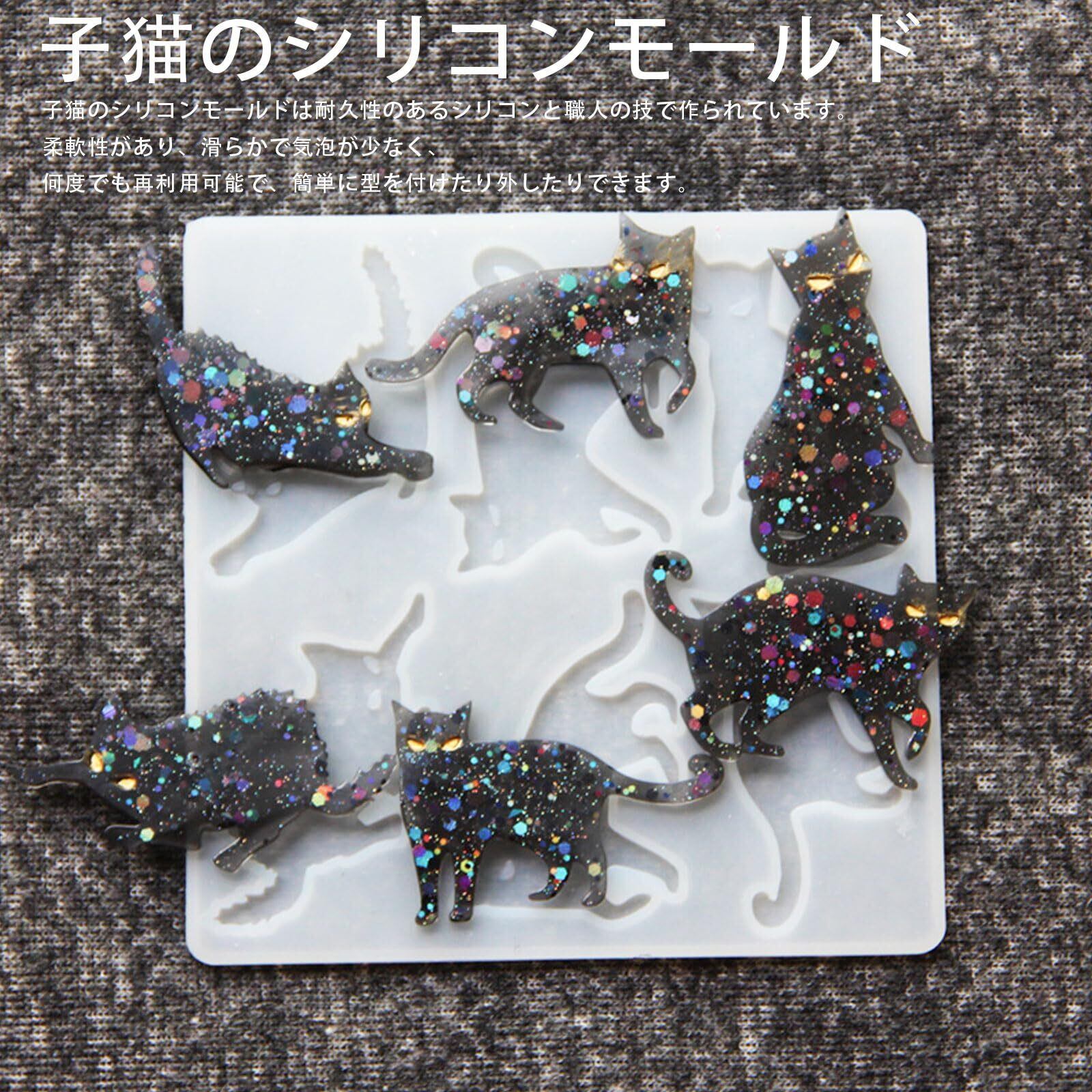 【製品仕様】シリコンモールド1個です。 サイズや形の異なる6種類の猫が入っています。 【高品質】高品質のシリコン製で、柔らかく弾力性があります。 耐久性があり、再利用可能。 素材は柔らかく、取り外しが簡単で、掃除が簡単です。 【DIY】カラーレジン、ドライフラワー、ペイント、グリッターなどの装飾パーツを追加して、自分だけのオリジナルアクセサリーを作ることができます。 【操作簡単】成形や脱型が簡単で、初心者でも簡単に操作できます。 【幅広い用途】さまざまなDIYプロジェクトに適しています。 ネックレス、ブレスレット、キーチャーム、ペンダントなどをお作りいただけます。 UVレジン、エポキシ樹脂、樹脂粘土などにもご使用いただけます。 家族や友人へのプレゼントとしても最適です。