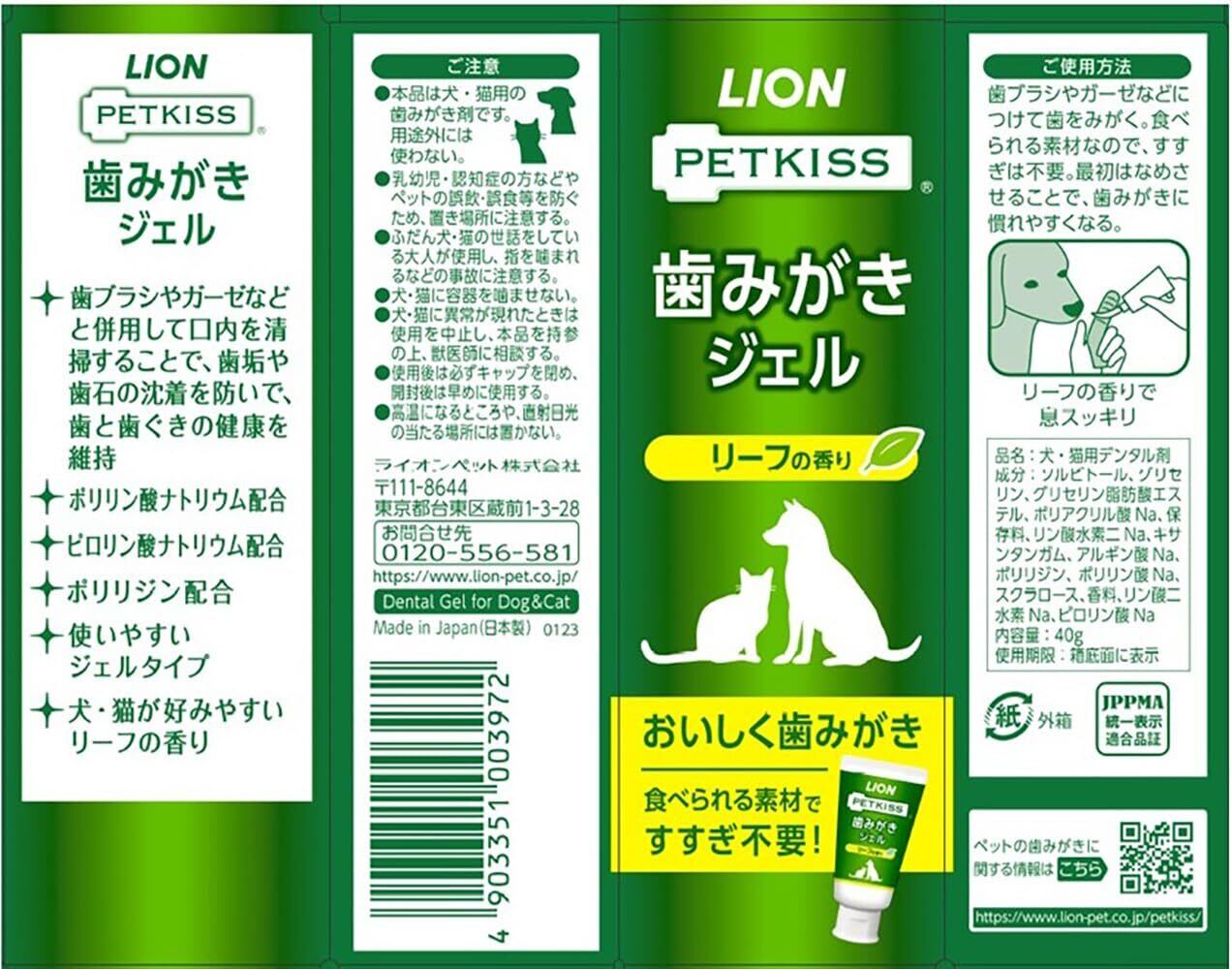 ライオン PETKISS 歯みがきジェル リーフの香り 犬猫兼用 40g LIONPET