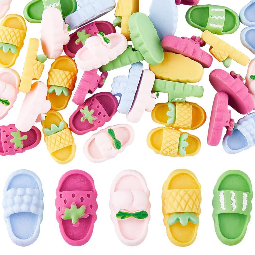 SUNNYCLUE 50個5種 サンダル カボション 果物 カボション サンダル チャーム 可愛い カボション 和風 桃 パーツ いちご 苺 スリッパ 下駄 ペンダント 西瓜 ぽっくり パイナップル ネックレス スイカ サーファー ピアス イヤリング カラフル 樹脂製 キーホルダー ブレスレット シリコン チョーカー マカロン系 チャームパーツ アクセサリーパーツ 混合ミックス 基礎パーツ ジュエリー作り レディース デコキット デコ素材 クラフト手芸 手作りハンドメイド キット DIY飾り物