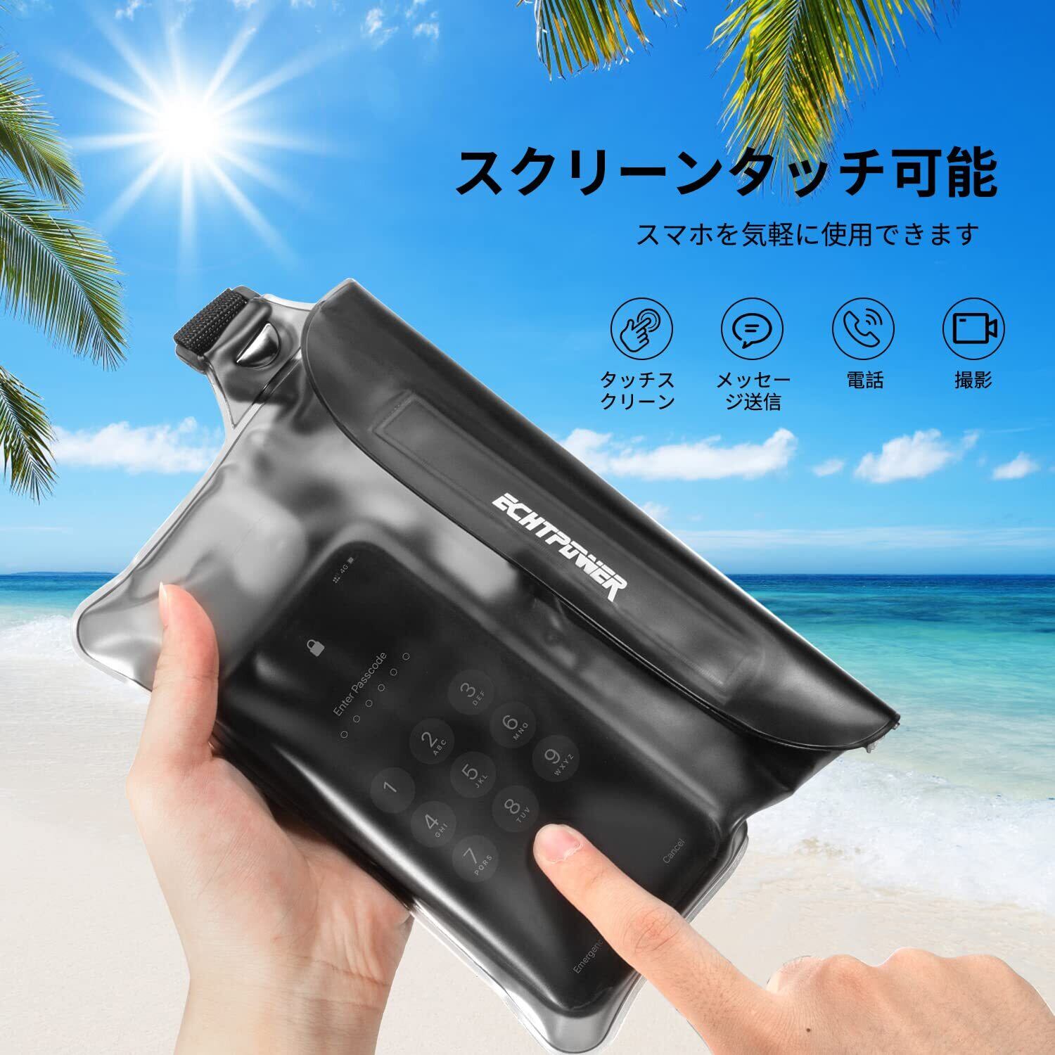 ECHTPower 防水ポーチ 2個セット 防水ケース IP68 大容量 軽い 小物収納 調整可能なベルト付き スクリーンタッチ可能 防水ウエストバッグ 海/プール/ビーチ/アウトドア/スイミング/釣り/ボード/海水浴に対応