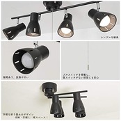 【スポット式4灯シーリングライト】人気のライティングバーに4つのスポットライトがバランスよく配置され、見た目はンプルですが、実用性が抜群なインテリア照明です。リビングやダイニングの主役照明にピッタリです。
