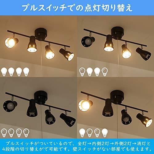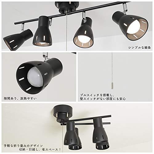 Jiya シーリングライト 4灯 スポットライト E26口金 LED電球対応 おしゃれ リビング 天井照明 北欧 インダストリア カフェ風 角度調節 折り畳み式 プルスイッチ 寝室 居間 ダイニング ストレート型 電球別売 ブラック