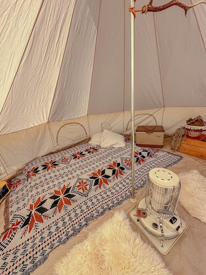 テーブルクロスとして活用しているキャンパーもたくさんいます。アンティーク調のキャンプ用品を置くことで、気分はネイティブアメリカン!