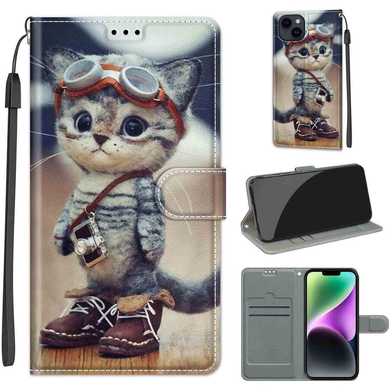 iPhone 15 Plus ケース 手帳型 iPhone15 Plus 手帳型ケース iPhone 15 Plus カバー アイフォン15 プラス ケース 手帳型 カード収納 手首ストラップ付き 保護力 衝撃吸収 磁気バックル 横置きスタンド機能 ワイヤレス充電対応 アイホン 15 プラス 6.7inch (スーツ猫) | yankees