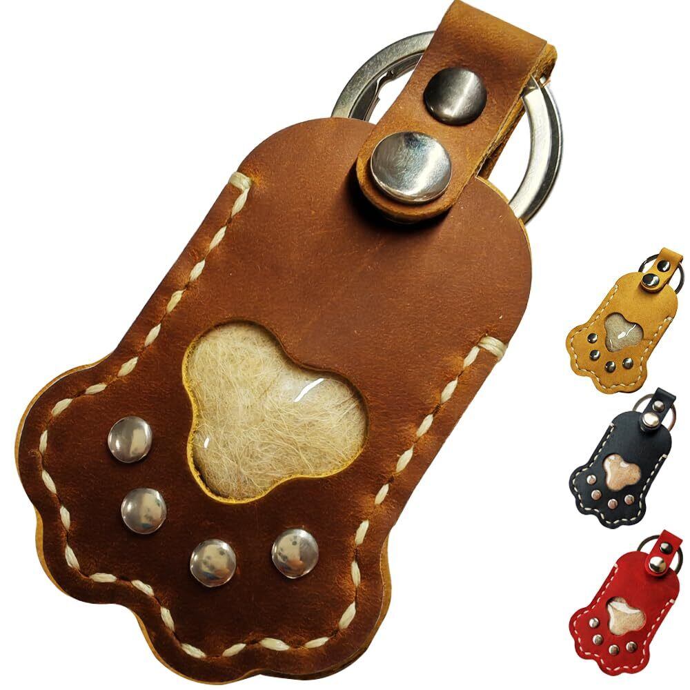 【大切なペットとずっと一緒】大切なあのコの遺毛を安心して納めておくことができる。天然皮革(牛革)の遺毛ケースです。肉球のカタチにくり抜かれた窓からはあのコの毛を見ることができます。キーホルダーのリング付きで一緒にお出掛けするときも安心です。