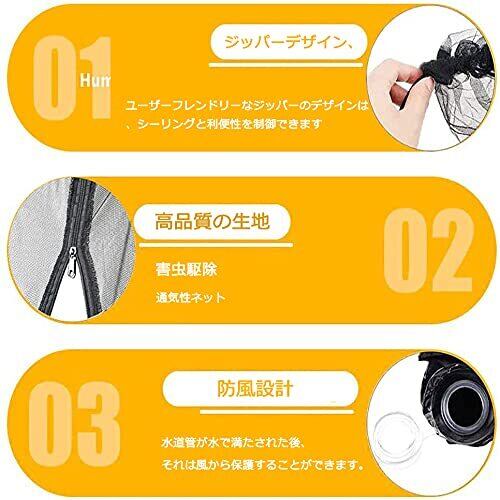1防虫ネットの上部は引きひもデザインで蚊帳、直径3m x 3m、高さは最大2.3mまで調整可能。
