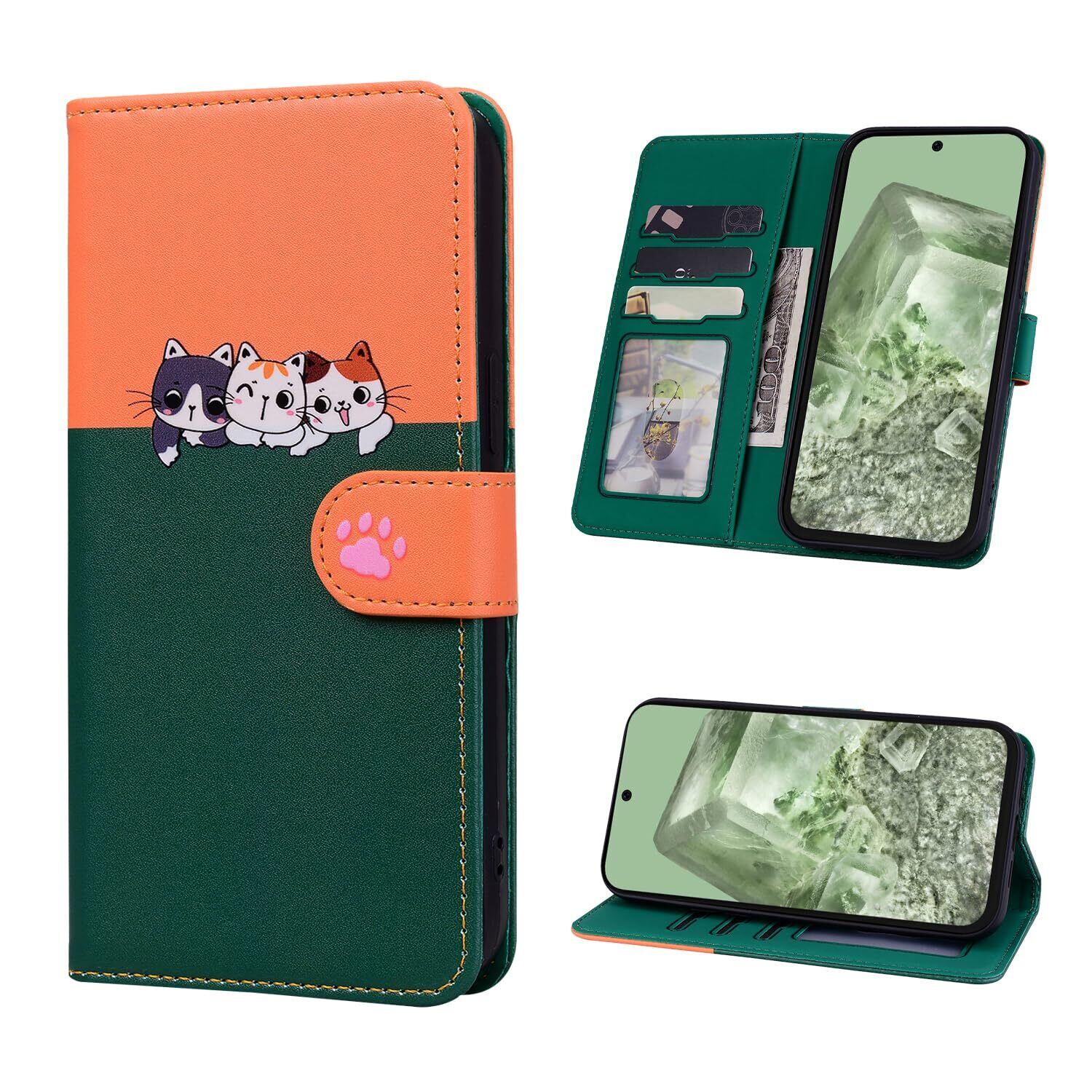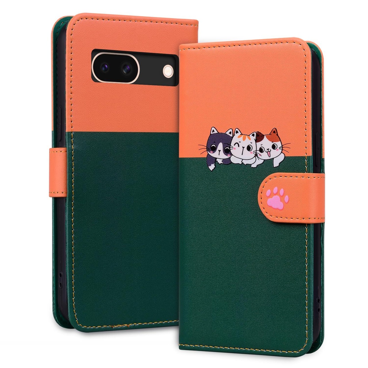 Google Pixel 8a ケース 手帳型 おしゃれ カバー ピクセル8a ケース 手帳型 お洒落 pixel8a ケース 人気 携帯カバー googleピクセル8a ケース かわいい子猫犬柄 スマホケース グーグルピクセル8a ケース 耐衝撃 手帳型 PUレザー カバー pixel8Aケース カード収納 マグネット式 スタンド機能 軽量(ダークグリーン)