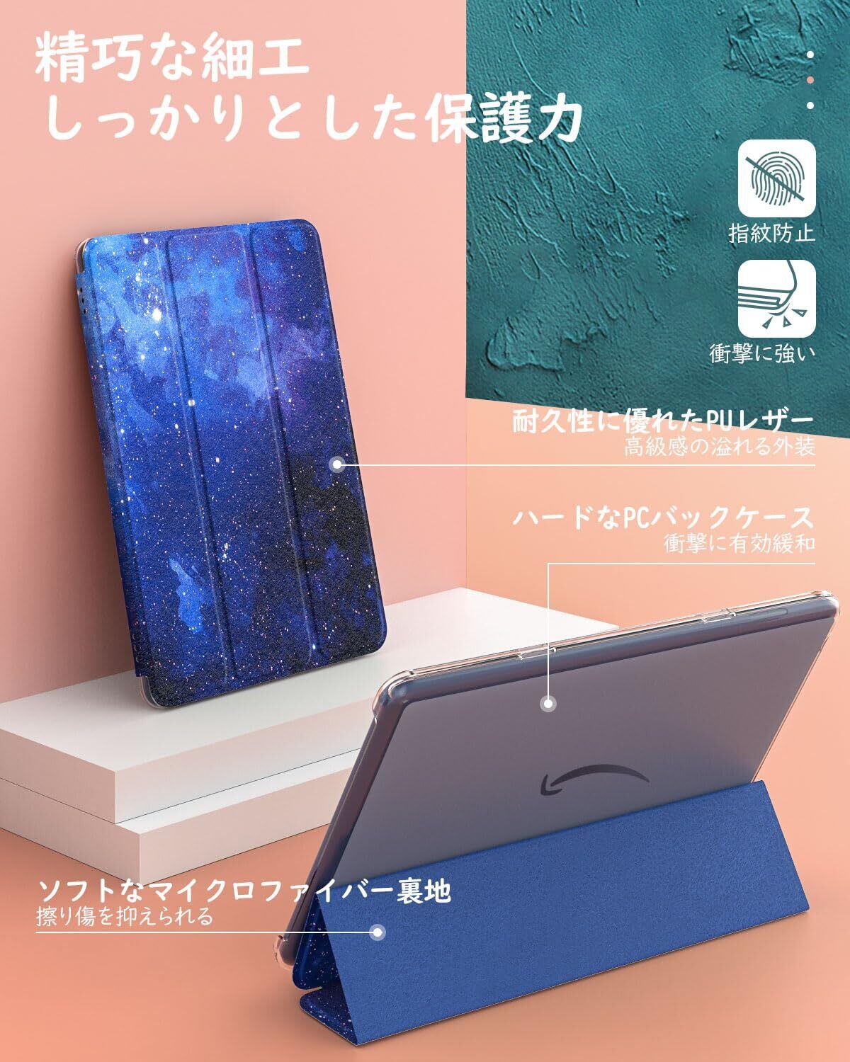 Fire HD 10 ケース 2023 Dadanism Fire HD 10 2023適用 第13世代 カバー タブレットケース オートスリープ機能 軽量 薄型 ハードPCバック マイクロファイバー裏地 PUレザー 耐久性 全面保護 スタンドケース 無色透明バック 青い星空