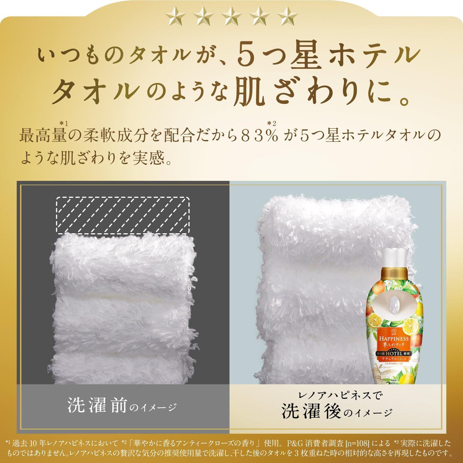 新レノアハピネス夢ふわタッチは、5つ星ホテルも認めた香りも肌ざわり。レノアハピネス夢ふわタッチで、おうちにいながら5つ星ホテルの贅沢を体験してください。