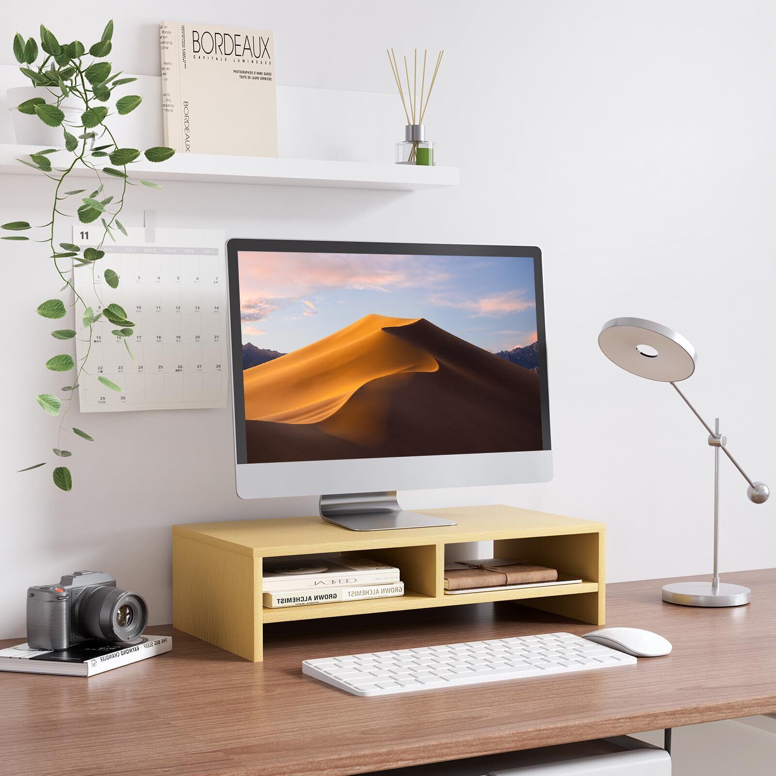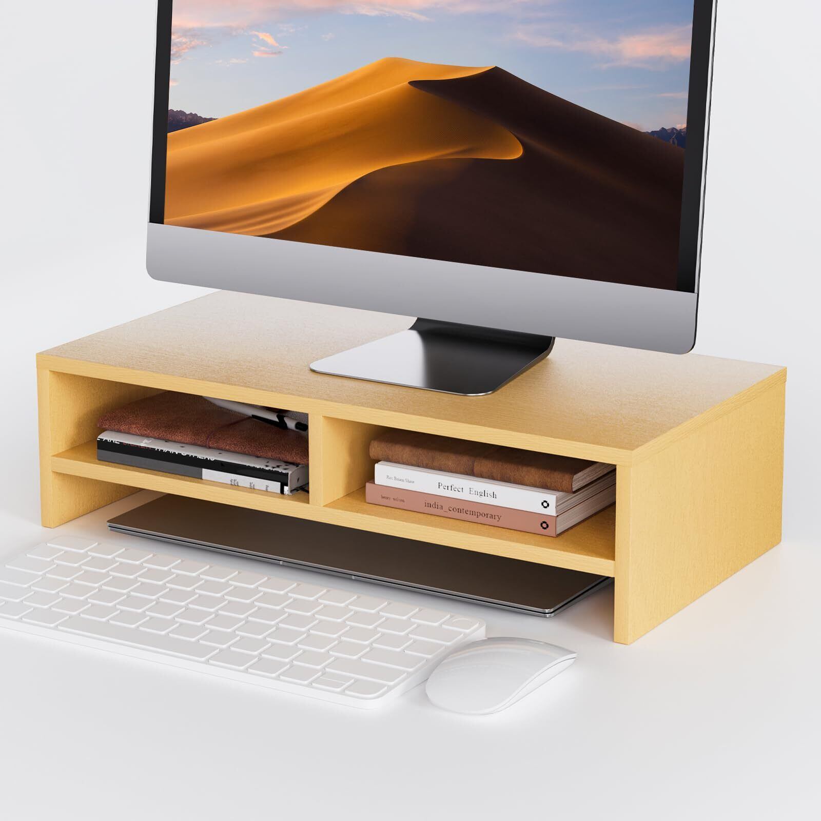 【省スペース&多機能】モニター台は様々な場合に大活躍!本棚やプリンター台/fax台などとしても便利です。キーボードやマウスを収納するには役に立ちます。多機能な机上台で、オフィスや研究室やリビングルームなどの場合もオススメです。画像や鉢植えなどお好きなものを飾れば、自分だけの癒し空間がつくれます。疲れが吹き飛んで作業率もアップさせる。