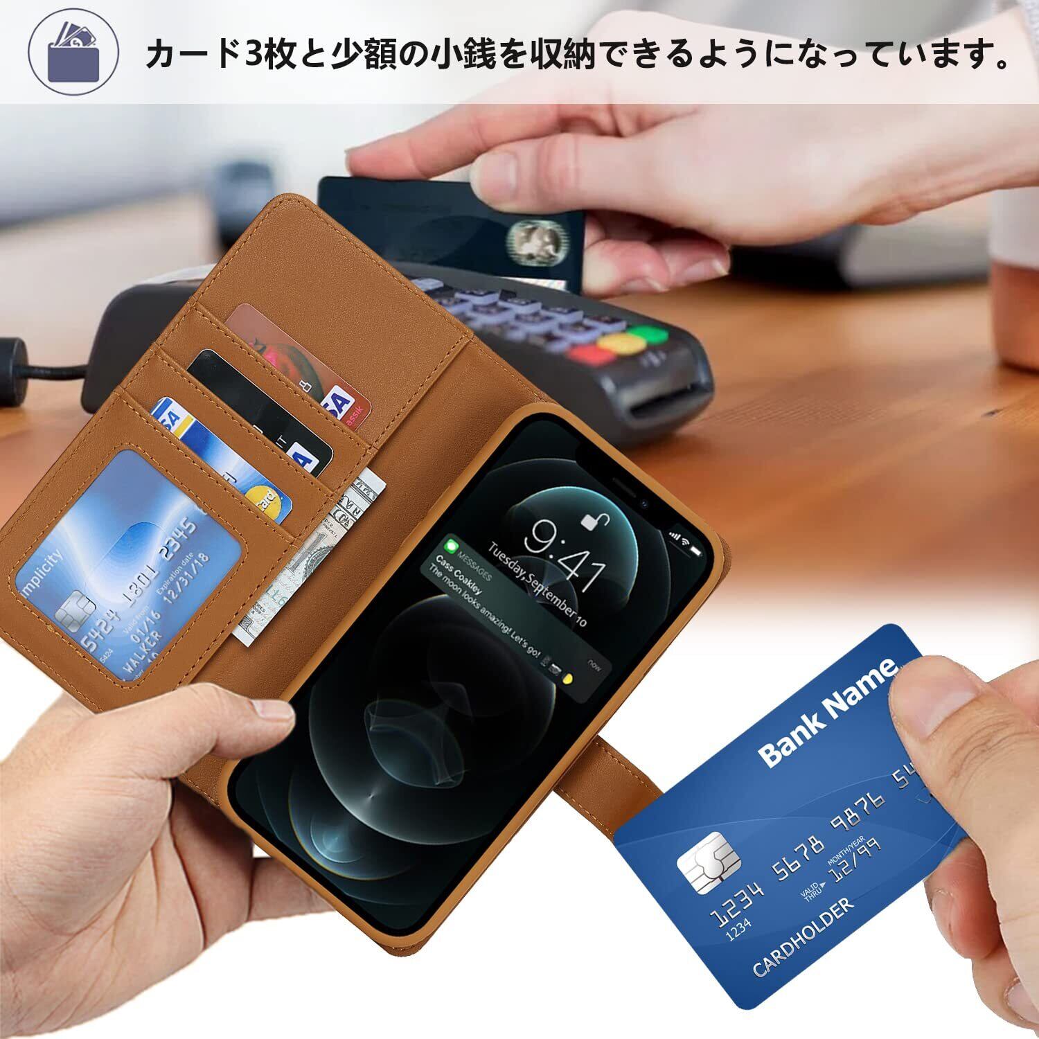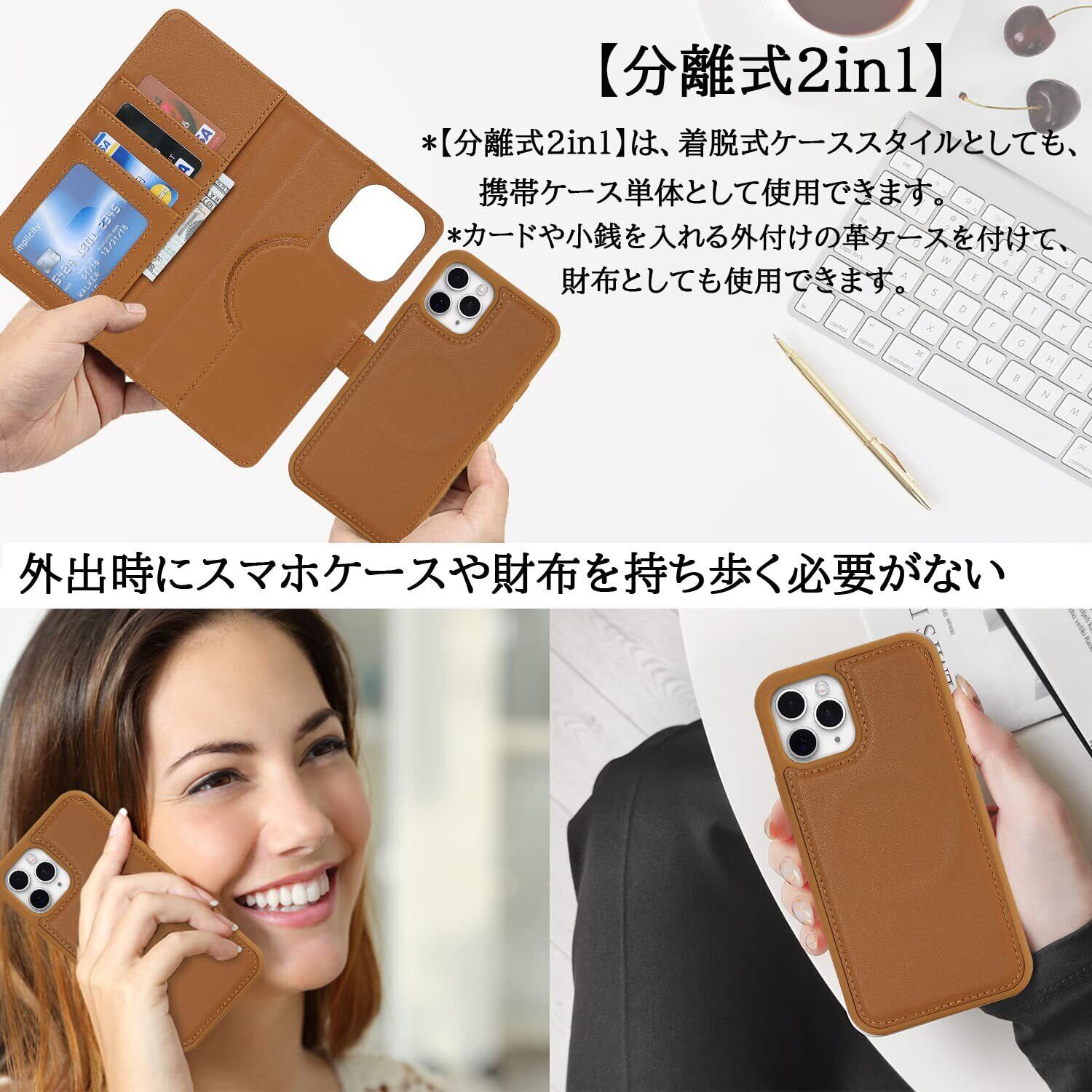 Havaya iPhone12 ケース Magsafe 対応 iphone12pro ケース あいふぉん12ケース 手帳型 マグセーフ 【分離式2in1】 カード収納 ワイヤレス充電対応(アイフォン12 /あいふぉん12プロ/いphone12/アイホン12プロ 6.1インチ対応)-ブラウン