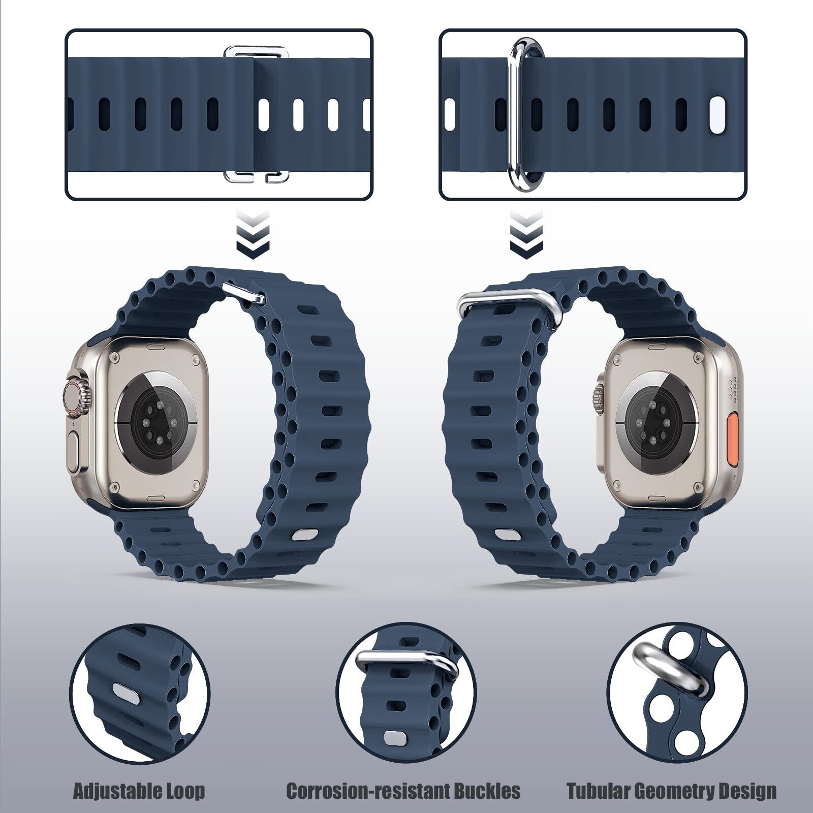 コンパチブル Apple Watch オーシャンバンド アップルウォッチ バンド 38mm 40mm 41mm 42mm 44mm 45mm 49mm for iWatch Ultra SE Series 8/7/6/5/4/3/2/1 に対応 スポーツバンド 交換ベルト シリコン製 柔らかい 通気 耐衝撃 防汗 男性 女性