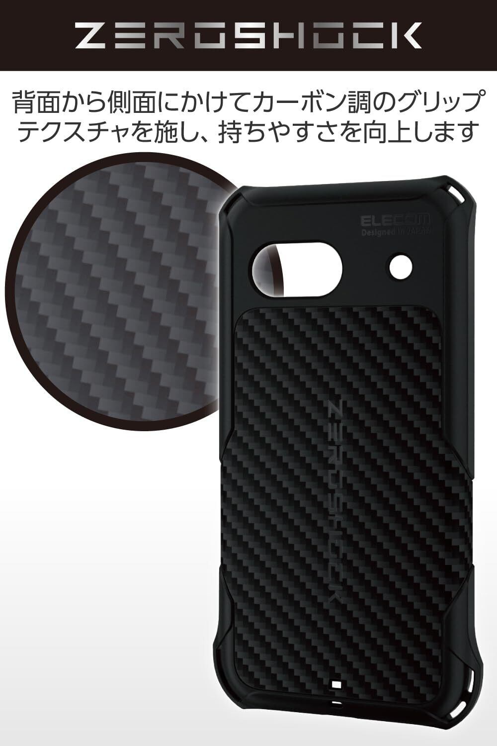 エレコム Google Pixel 8a ケース カバー 耐衝撃 衝撃吸収 ZEROSHOCK 4つ角ダンパー ハイブリッド TPU ハニカム構造 グリップテクスチャー ストラップホール付き カメラ保護 ワイヤレス充電 対応 エアークッション ブラック PMWP241ZEROGBK