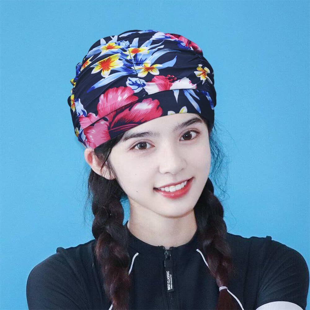 水泳帽子 プール帽子 花柄 長髪短髪 プール帽子 スイミングキャップ 水泳 キャップ 実用的 伸縮性良い おしゃれ プリーツ 花柄 海水浴 水泳 温泉 男女兼用 大人用