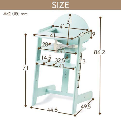 アイリスプラザ ベビーチェア テーブル付き 調節可能 3点式ハーネス ハイチェア 木製 キッズチェア イス 子ども用 ミント