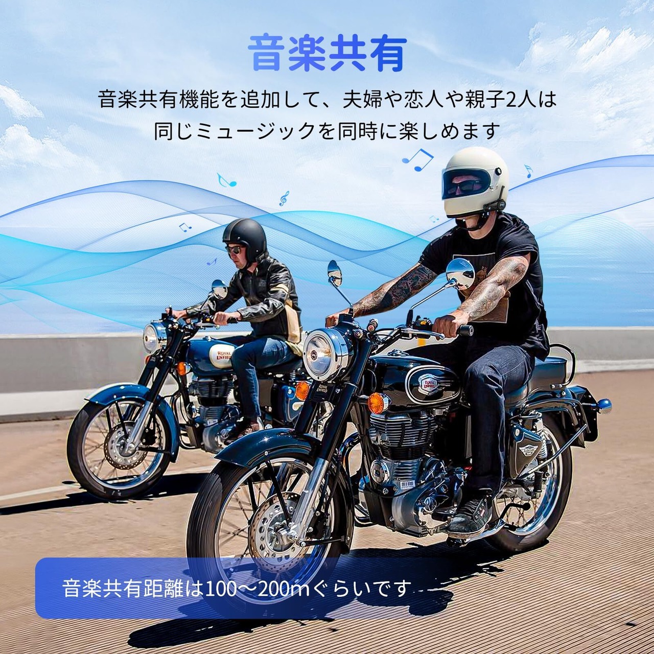 「音楽共有&3段階音質調整&ワイドFMラジオ」本インカムは音楽共有機能を搭載して、夫婦や恋人や親子2人はツーリング途中で1台ミュージックプレイヤーの同じ音楽を同時に楽しめます。音楽共有距離は理論的にインカム通信距離と同じですが、音楽を楽しめる為に、タンデム通話の場合をおすすめします。音楽再生中に音質(高音・中音・低音)は調整可能です、曲によると、異なる音質を選択でき、お好みの音質を楽しむことができ、バイクライフに楽しみを加えます。また、fx8 airはFMラジオ機能が付き、周波数帯はグローバル(76HMz~108HMz)ので、日本全国内のFM放送が受信可能です、バイクツーリングを面白くになります。