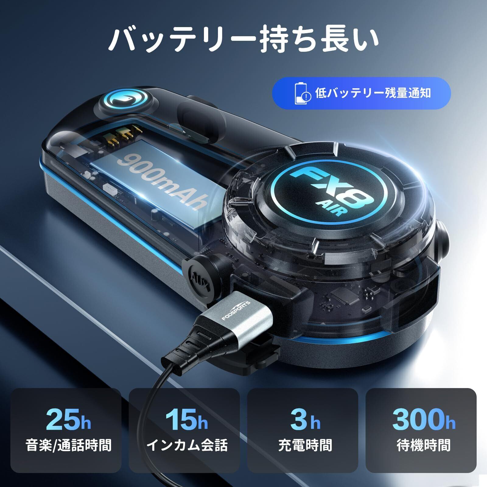 FODSPORTS バイク インカム FX8 AIR インカム 4~6人同時通話 HI-FI音質 FMラジオ 他のインカムと通話可能 Bluetooth5.0 音楽共有 バイク用インカム 25H連続使用 ワンタッチペアリング 三重ノイズ低減 AUX接続で音楽聞きながら通話可能 IP65防水 Siri音声対応 ヘルメットインカム 2種類マイク 日本語音声案内&取説 技適マーク認証済み(1台)