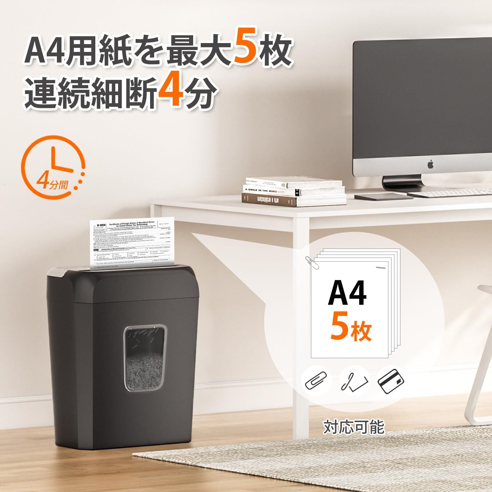 【カード類/ホッチキス針/クリップ細断可能】紙だけでなく、ホッチキス針とクリップをそのままで細断可能で、カードも細かく細断できますので、情報モレ防止に役立ち、家には欠かせないものです。 (A4コピー用紙(64g/㎡)の場合の細断枚数です、これより厚い紙の場合は細断できる枚数が減る可能性もあります。)