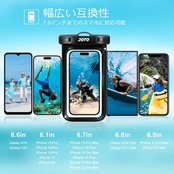 【防水規格】IPX8(JIS保護等級8級と同等)、30メートルまで水没しても内部に浸水することがなく、水深10mで2時間の潜水が可能です。ご注意:ご使用の前に必ずスマホの代わりに紙や布などをケースに入れて、防水ケースを水没して30分間の防水試験を行ってください。もし不具合が発生する場合、弊店にお問い合わせください。