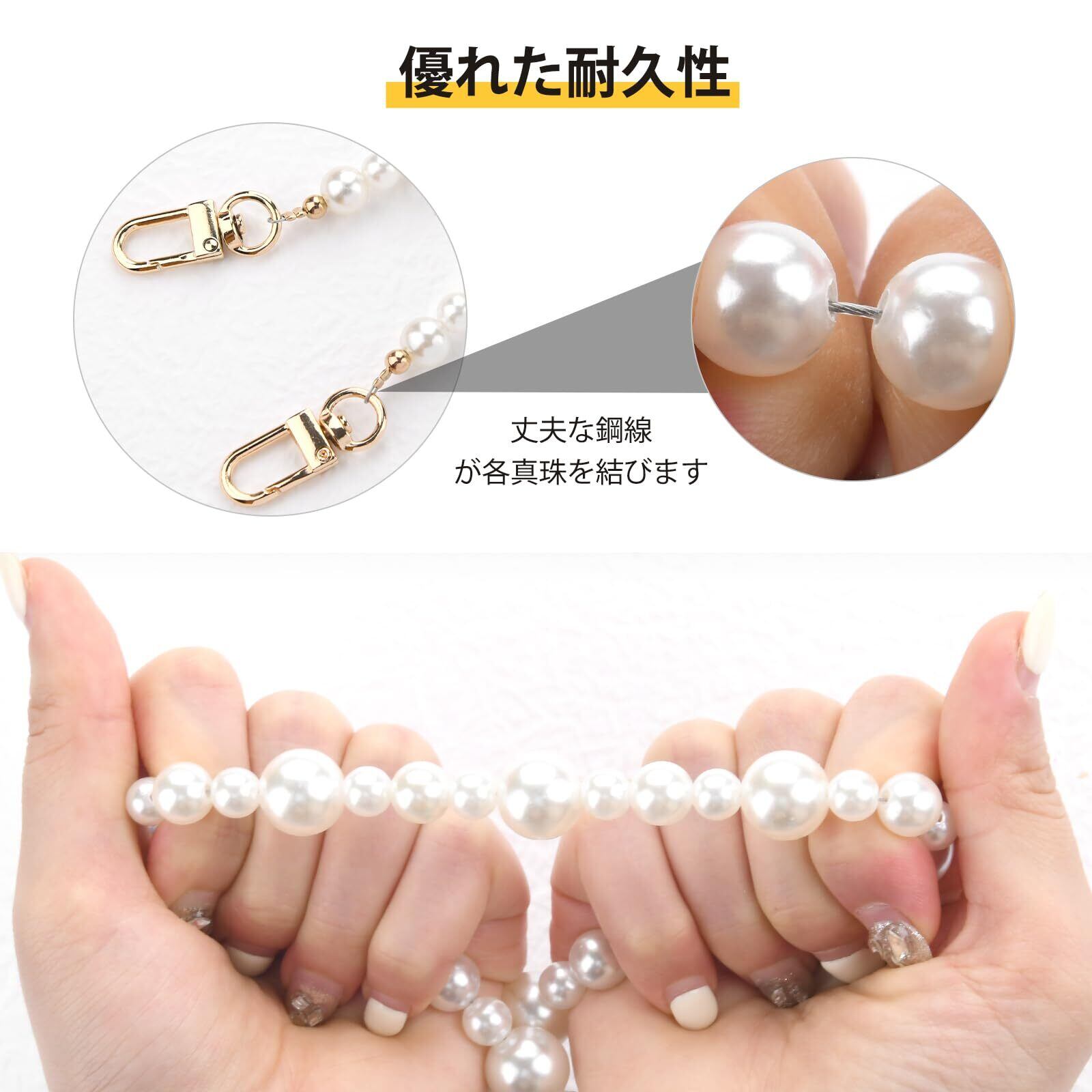 【綺麗のパールチェーン】従来のナイロン製紐よりも高級感があって、良質な人工パールで作られ、パールのユニック雰囲気が流れていますので、かわいくておしゃれな感じを与えます。このパールのスマホストラップは相性がよい、様々な衣装に合わせやすい、日常使用、通勤、学校、旅行などに適合し、パールチェーンがとでも魅力があります。
