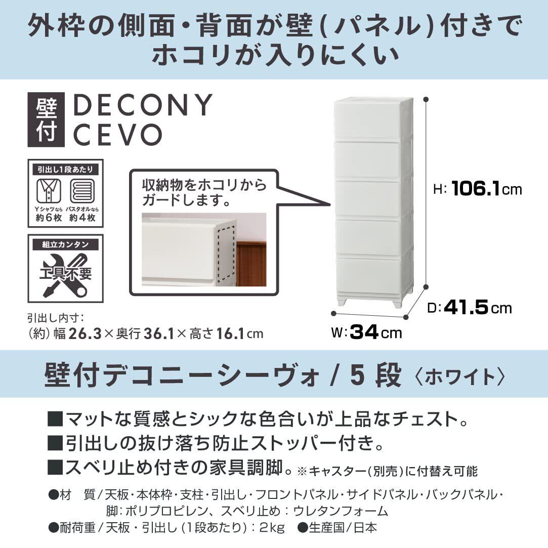 JEJアステージ(JEJ Astage) 収納チェスト 壁付デコニーシーヴォ 5段 ホワイト 日本製 収納ボックス 衣類 タンス