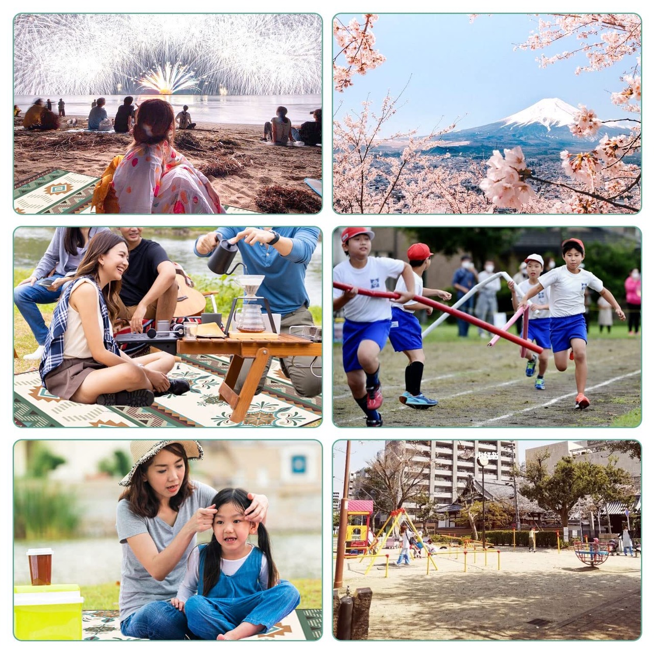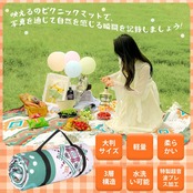『製品仕様』サイズ:200㎝×200cm 収納サイズ:約41cm×14cm×14cm 重量:約1kg 素材:表地紬素材/中地スポンジ/裏地オックスフォード素材 3層構造で作られた高品質なレジャーシートが、柔らかくてちょうどいい厚さで重くなく持ち運びやすいです。長時間座ってもお尻が痛くなく、快適な座り心地を提供します。