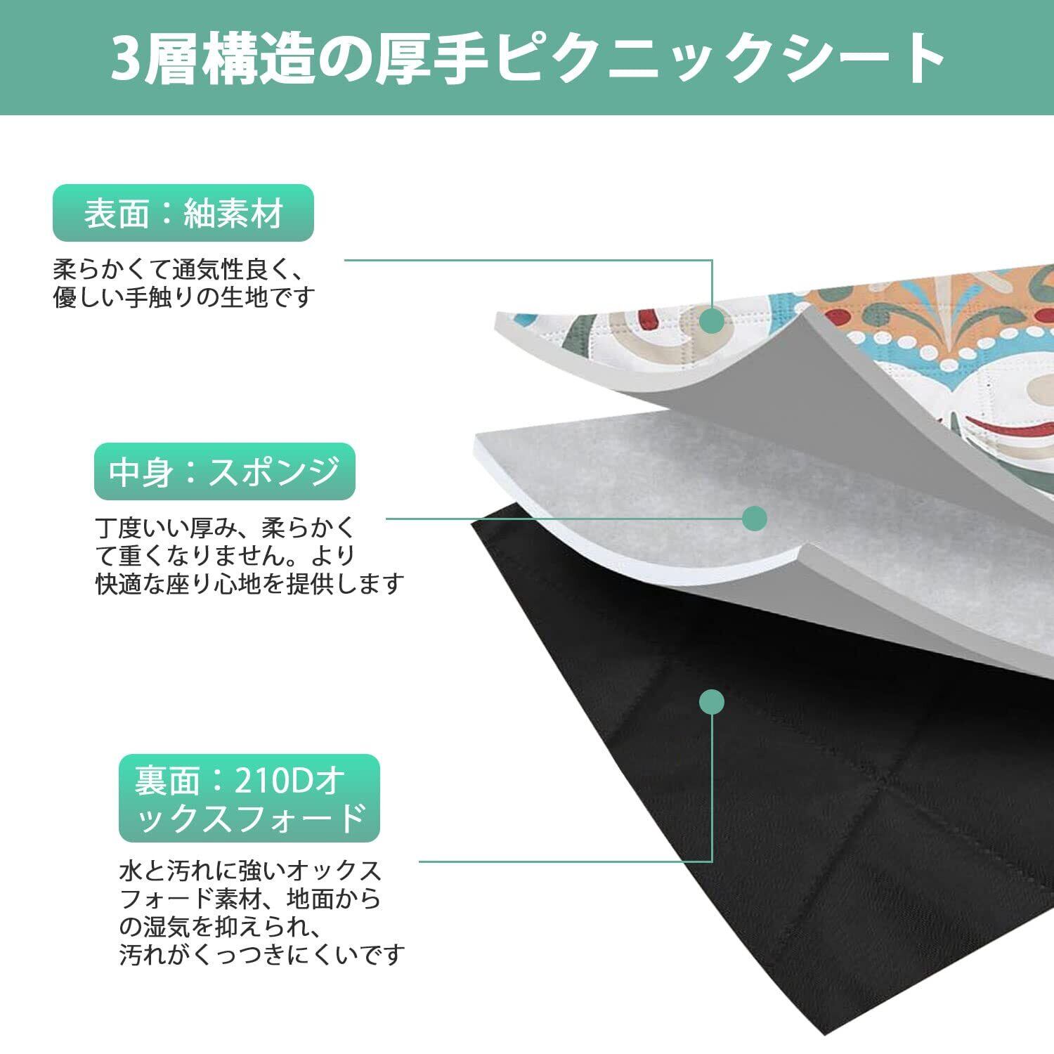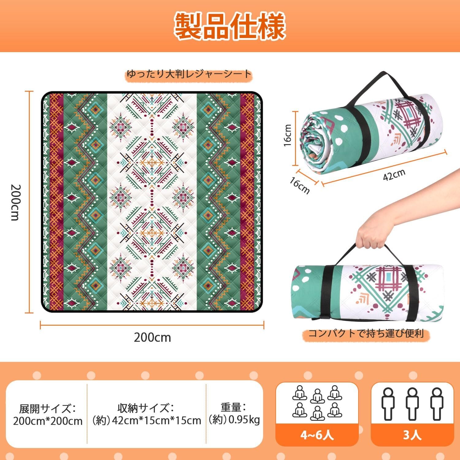 レジャーシート 情緒シリーズ 200x200cm 軽量 厚手 ピクニックマット 撥水 防湿 大判 テントマット 超音波プレス加工 大人子供 4~6人用 キャンプマット インナーシート 洗濯機洗い可 ネイティブ柄 民族風柄 (期待)