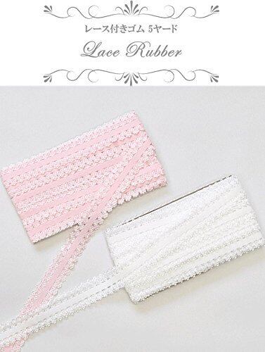 MYmama レース付きゴム 5ヤード 約23mm幅 レース 中央ゴム入り 手芸 (ホワイト)