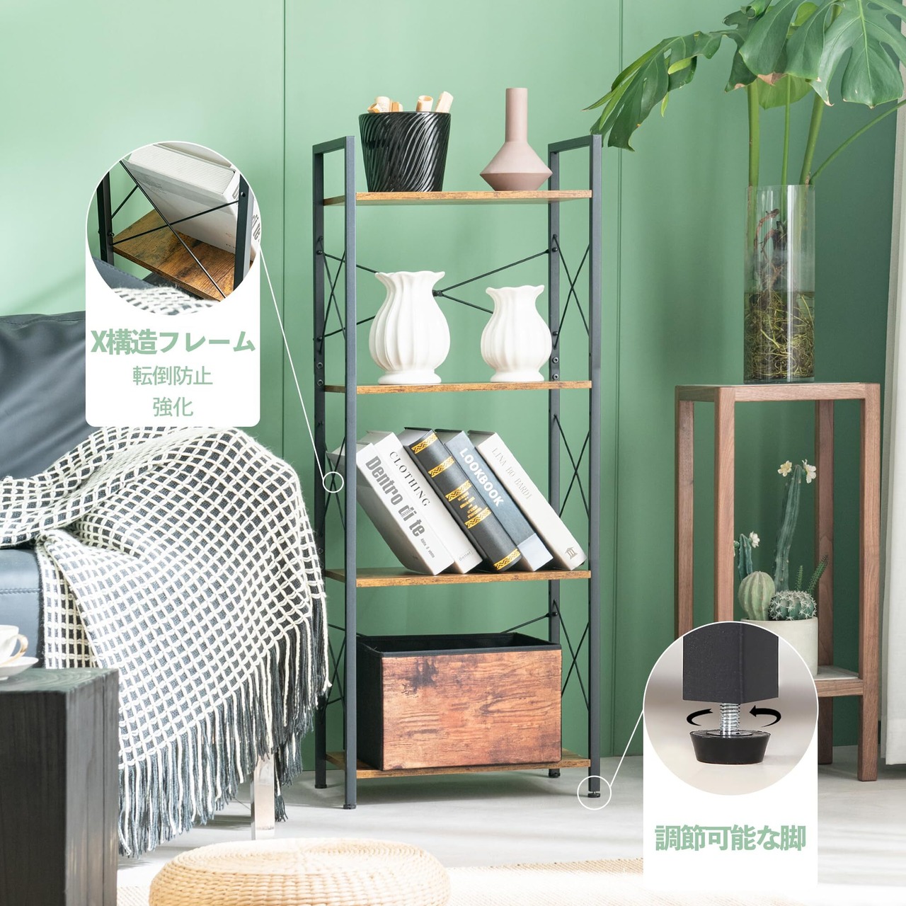 HCHQHS キッチンラック おしゃれ オープンシェルフ 本棚 組立品 4段 ディスプレイ 食器棚 スリム 隙間収納 木目 組立簡単