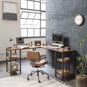 【収納能力】CubiCubi デスク l字 両サイドに棚板付きで収納力抜群!中段棚は取り外すこともできますので、ニーズに応じて様々な使用場面に適応します。