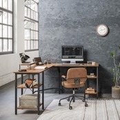 CubiCubi デスク l字デスク ラック付きデスク モニター台付き ゲーミングデスク パソコンデスク 勉強机 一人暮らし 収納便利 128cm*128cm pcデスク ブラウン