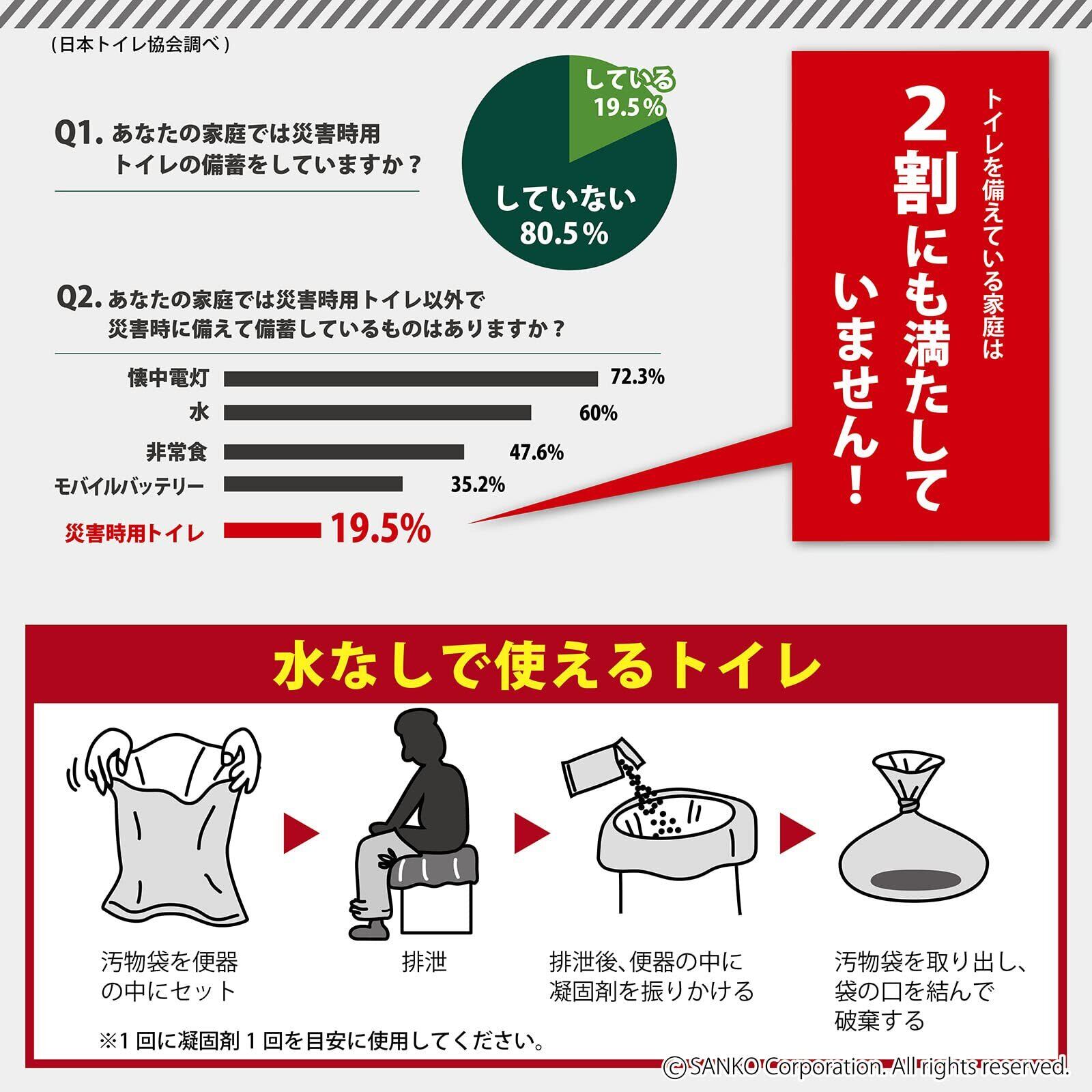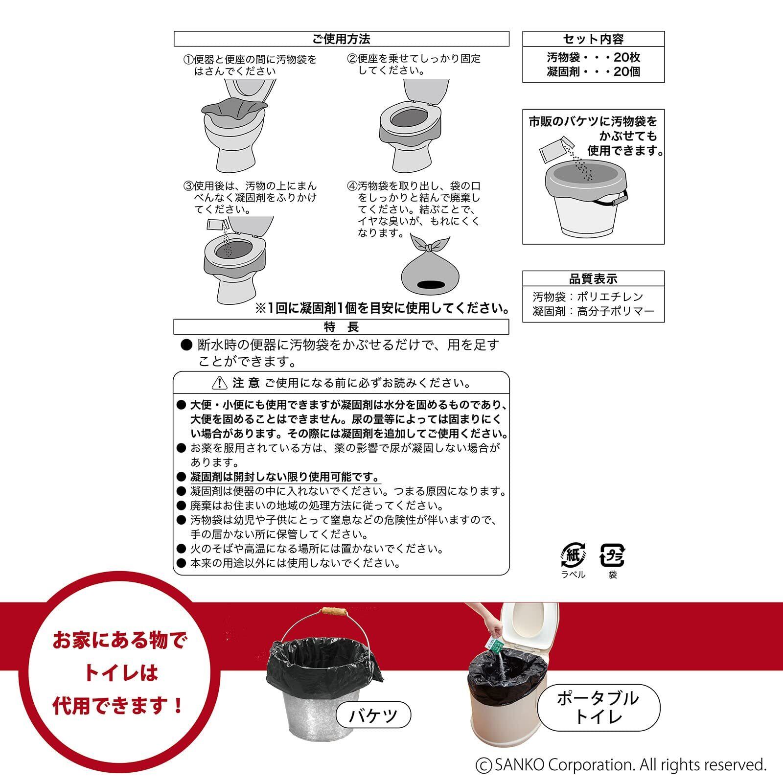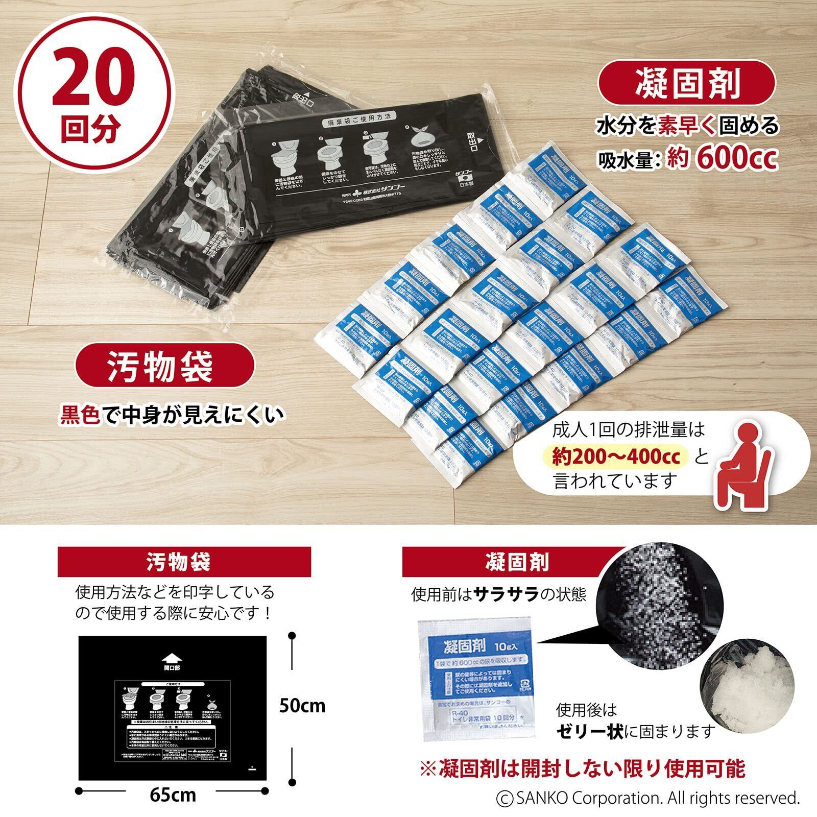 Nico (ニコ) 非常用 災害用 簡易トイレ 旅行 キャンプ 備蓄 携帯 防災 日本製 取替え用【排泄処理袋 凝固剤 20回分】長期保存 R-64