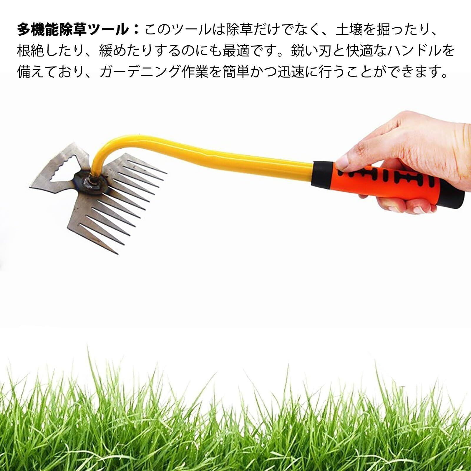 11本爪の多目的草取り道具:人間工学に基づいたデザインの除草ツールは、雑草を簡単に取り除くことができます。延長デザインのハンドルは使用範囲を広げ、尖った先端は狭いスペースでも簡単に扱えるため、さまざまな環境に適しています。