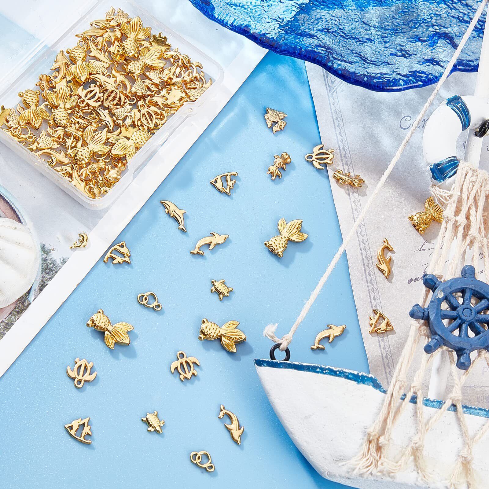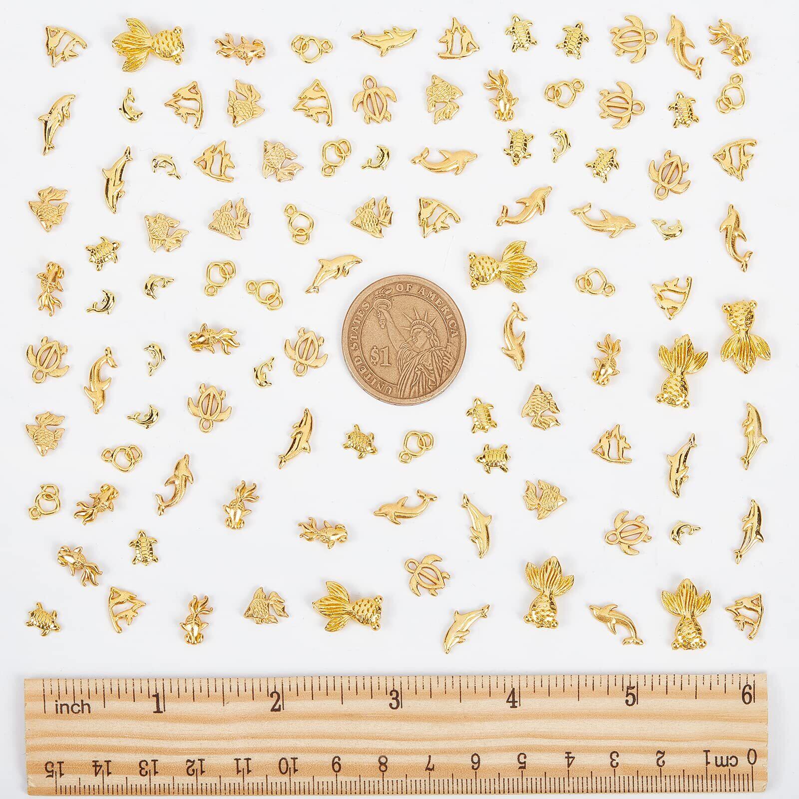 OLYCRAFT 120個 レジン封入物 メタルパーツ 海洋動物 亀 金魚 パーツ 封入素材 合金UVレジン デコパーツ ネックレス ネイル用 DIY ハンドメイド パーツ アクセサリーパーツ 手作り ゴールド | yankees