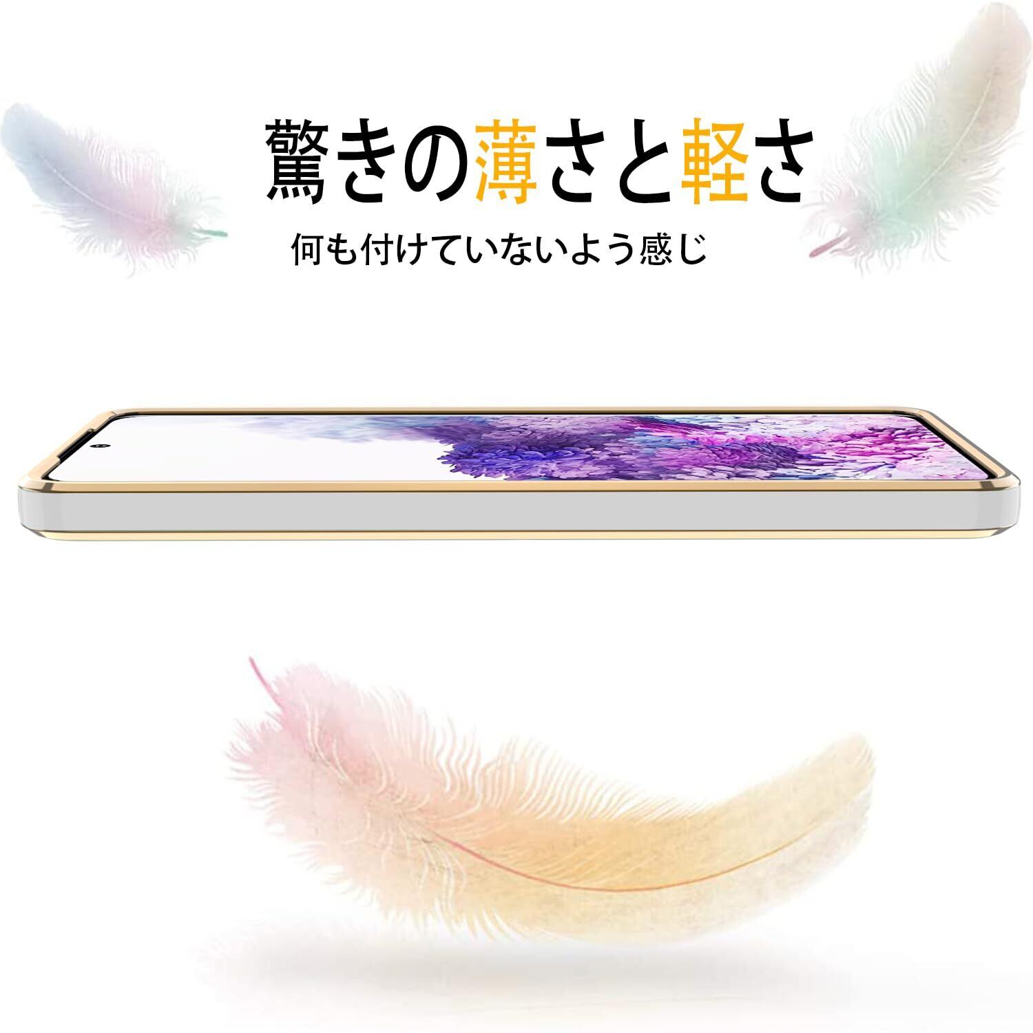 Galaxy S22 5G 用ケース クリア 耐衝撃 TPU ケース レンズ保護 ソフトケース 透明 メッキ加工 ワイヤレス充電 ギャラクシーS22 用カバー ラップホール付き 薄型 軽量 メッキ枠 ホワイト/ゴールド JP2-90