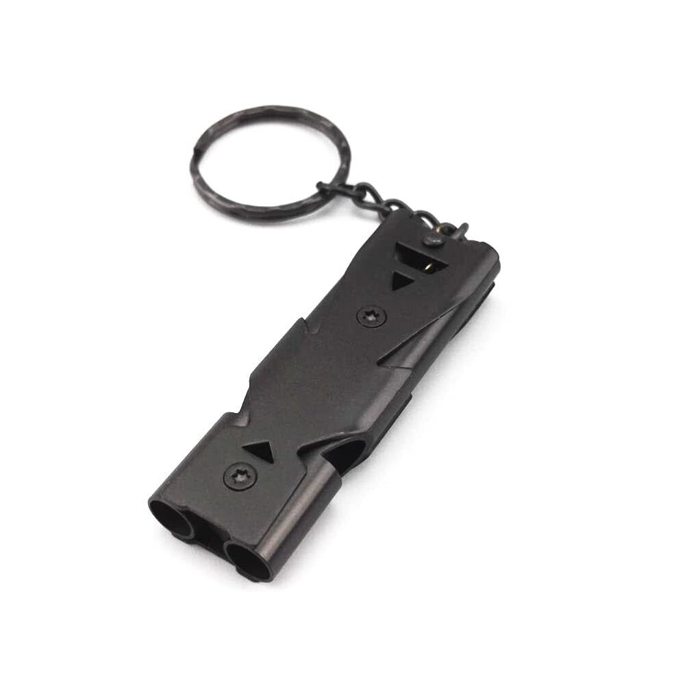 大音量ホイッスル ステンレス製 2チューブタイプ 約100~120dBの大音量タイプで災害時など緊急用としても 約57x18x9mm ダークグレー