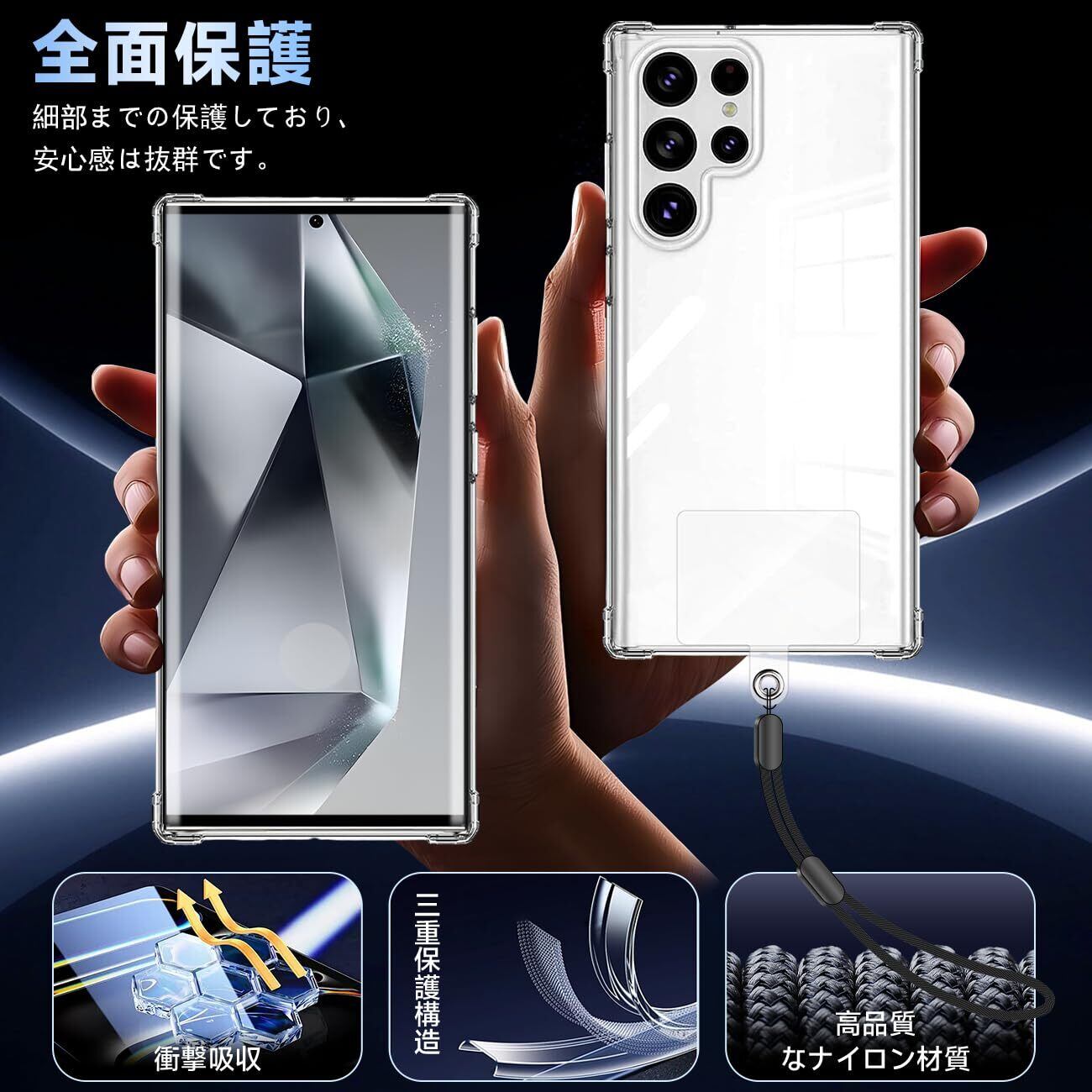 対応 Galaxy S24 Ultra 5G ケース クリア ケース Galaxy S24Ultra 5G SC-52E SCG26 SM-S928Q カバー TPU 保護ケース カバー背面 + GalaxyS24 Ultra 5G ガラスフィルム Galaxy S24 Ultra 5G フィルム フィルム Galaxy S24Ultra5G 強化ガラス 強化ガラス + ショート ストラップ 携帯ストラップ + TPU マテリアル