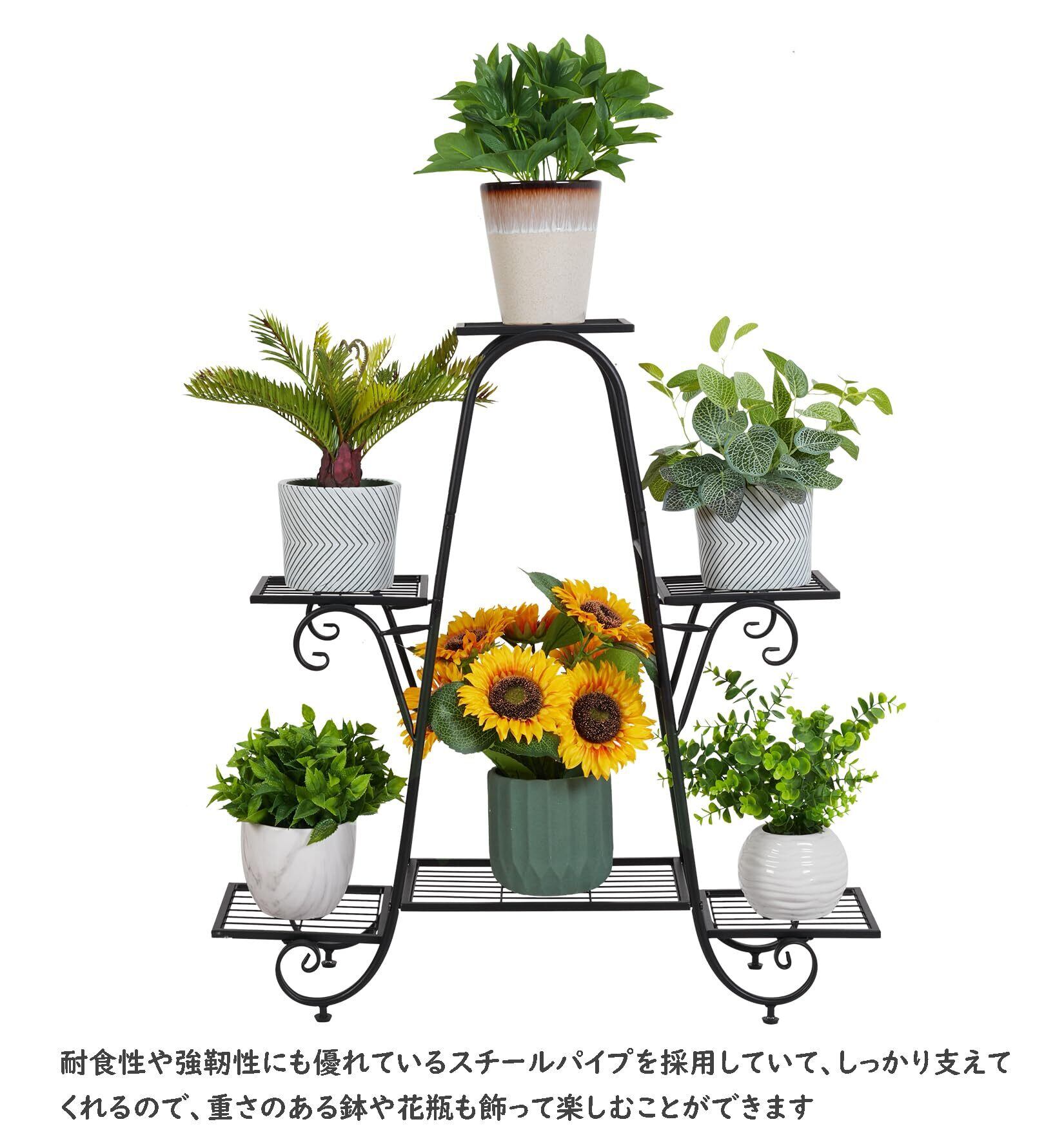 【大容量の大型植物棚】6つの棚板があり、6鉢以上の鉢植えを置ける大きな植物棚で、空間を有効活用できます。さまざまな種類の花や植物を自分のセンスで上手く飾ってみたい方に適しています