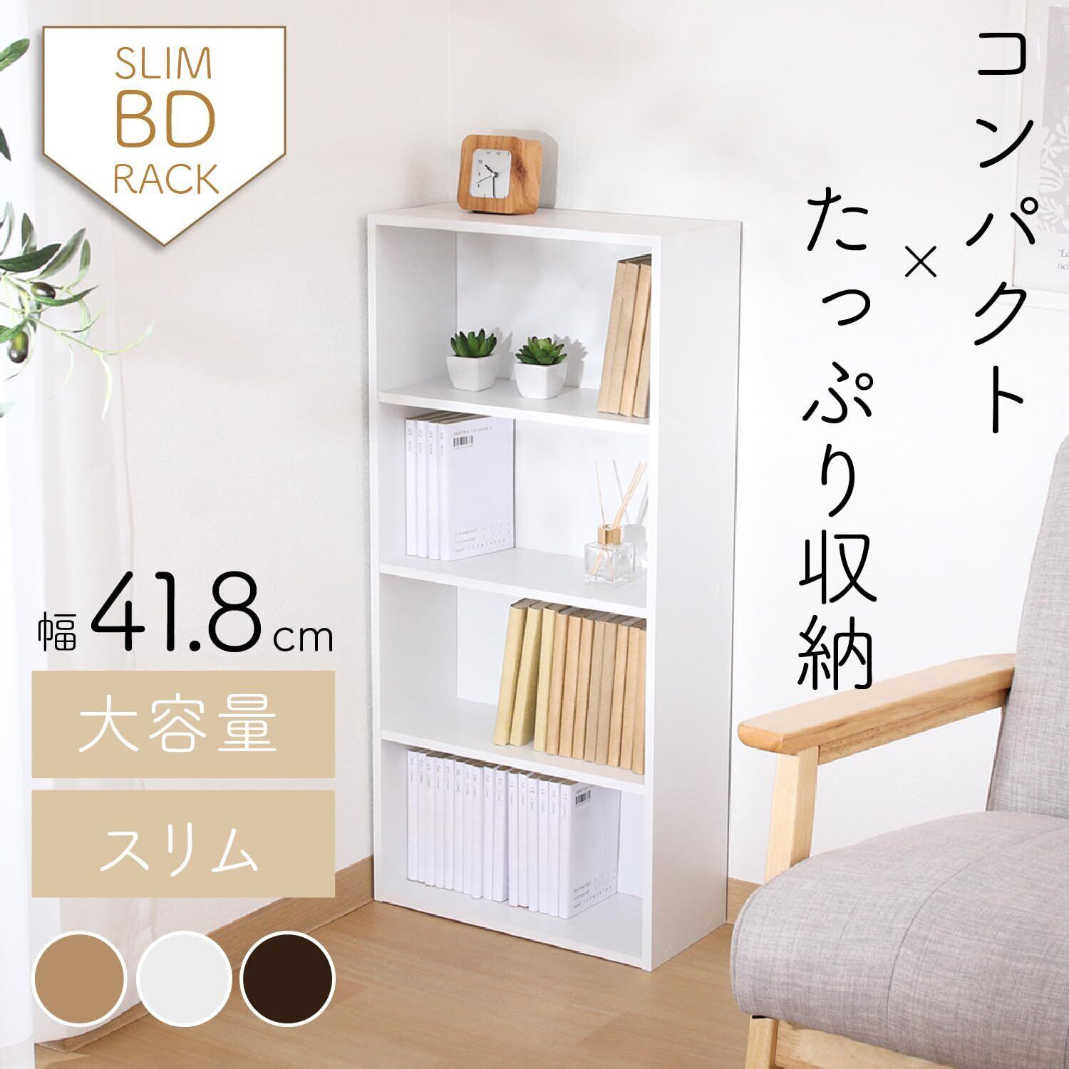 不二貿易 本棚 コミック収納ラック 4段 幅41.8×奥行18.5×高さ89cm ホワイト CD&DVD収納 固定棚 組立商品 81397