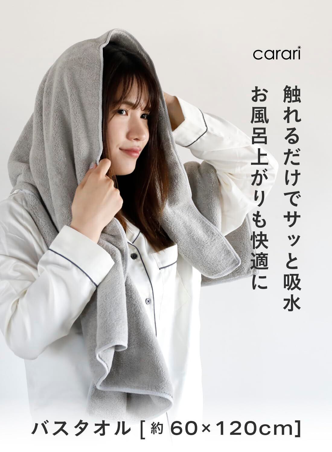 シービージャパン(CB JAPAN) carari(カラリ) バスタオル 吸水力[5倍]のマイクロファイバー DAY グレー 2枚組 繊維の隙間に素早く吸水 速乾 マシュマロ肌触り ふわふわもちもち 60×120cmカラリデイ