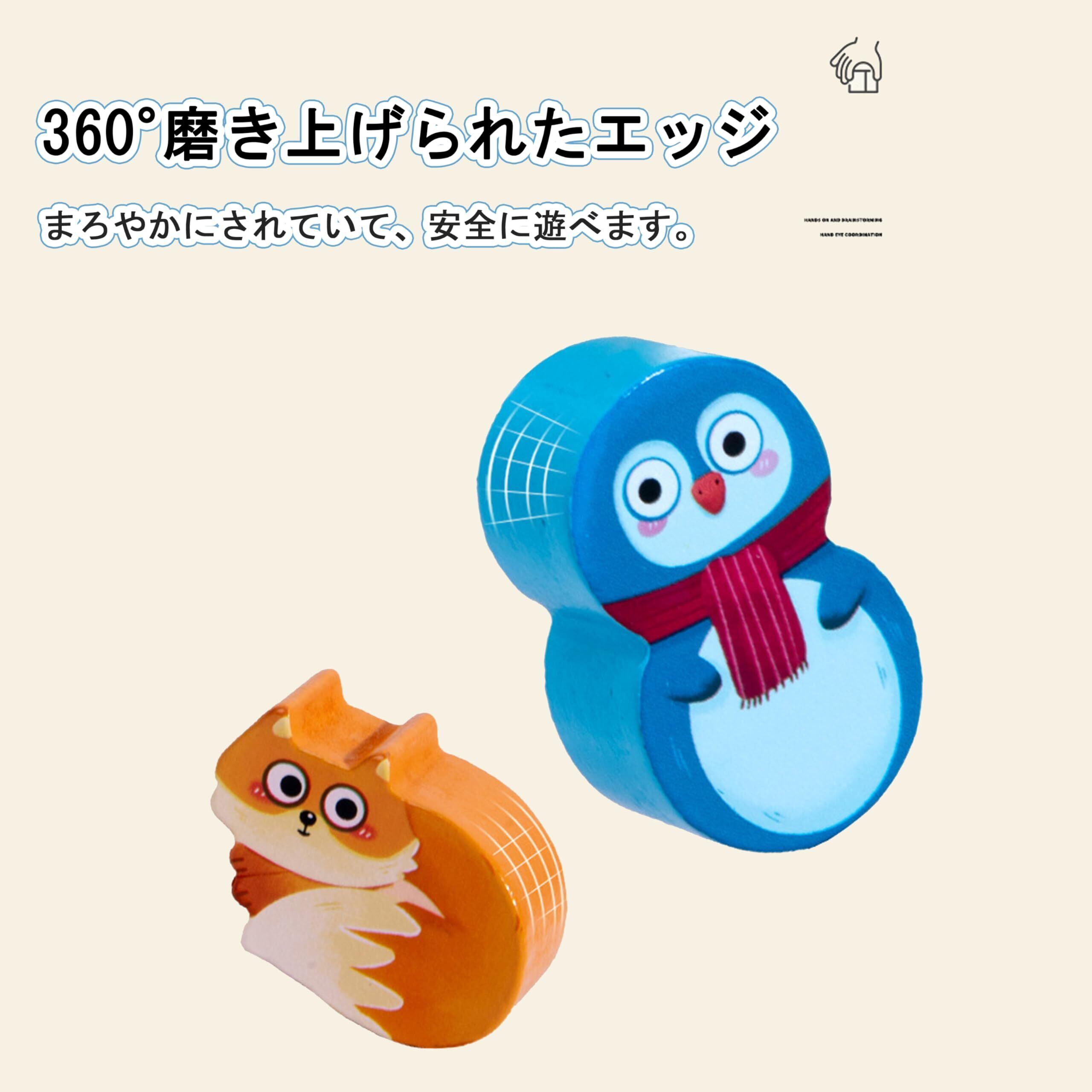 Shinse 動物 積み木 バランスゲーム 木製 木のおもちゃ 可愛い 知育玩具 モンテソッリー 集中力 指先訓練 形状認識 早期開発 1 2 3歳子供が見守りで遊ぶ 男の子 女の子 大きいブロック クリスマス 誕生日 プレゼント ギフト 収納袋付き 猫