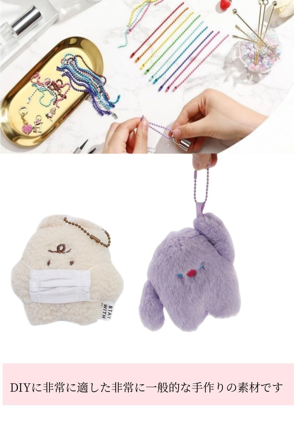 【商品内容】ボールチェーン100個セット(ランダムカラー)、サイズ:ボール径約2.4mm、全長約12cm(±0.5㎝)。